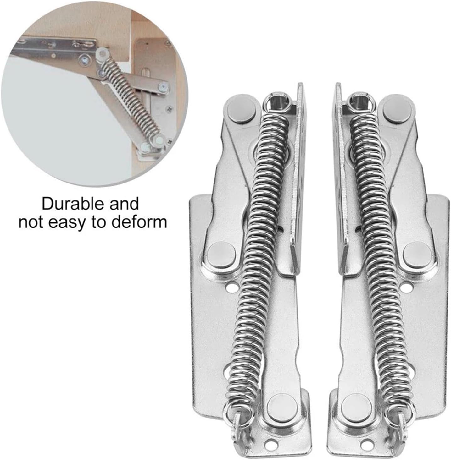 1. More convenient for daily use; the door can be gently pulled back to close, keeping the cabinets neat and organized.2. Scratch-resistant, adding a touch of design to any cabinet in the kitchen, bathroom, or home.3. Each hinge comes with mounting screws, providing everything you need for quick and easy installation.Features:*Lid Support:This lift-up hinge flap support is made of steel material, ensuring its durability and reliability for long-term use.*Solid lifting prop with 240N Spring Force:With a strong and sturdy lifting prop, this hinge provides a lifting force of 240 N, allowing for smooth and effortless opening and closing of the lid.*Easy Installation and Versatile Usage:Designed for screwing in 32 mm hole spacing, this hinge can be easily retrofitted, replaced, or used as an exchange for various applications.*Left and Right Flip-up Hinges:This package includes a pair of flip-up hinges, consisting of left hinge and right hinge, ensuring a balanced and consistent performance.Specifications:*Product Name:Lift-Up Hinge Flap Support *Material:Steel*Size:No*Maximum Opening Angle: 80°*Color:SilverPackage Content:1 pair of Lift-Up Hinge Flap Support Note:1. The real color of the item may be slightly different from the pictures shown on website caused by many factors such as brightness of your monitor and light brightness.2. Please allow slight manual measurement deviation for the data.