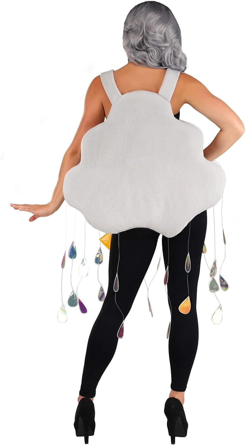 Wishing for Weather Some people always wish for sunny days. Others hate the heat. But who doesn't respond to the rumble of thunder and the flash of lightning? When spring storms hit, you know that winter has left your area for the season. A summer thunderstorm brings a break from the heat and a reason to curl up in a chair and watch the weather outside. A fall thunderstorm puts you in a spooky state of mind and gives you a craving for hot cocoa and a crackling fire. And after any storm, a sunny day will always seem a little more sparkly. If there's nothing you like more than a good ol' storm, celebrate the weather with this delightful Rain Cloud costume! Design & Details This unique Made By Us stormy costume was designed by our in-house creative team. The sandwich board style is simple to slip on over a range of outfits. A bright bolt of lightning and sparkling raindrops will make this costume clear to anyone at a first glance! Wear this with playful rain boots to wear to an elementary school costume day or dress it up with a sparkly rain-worthy ensemble underneath. No matter how you wear it, this costume is sure to cause a splash wherever it goes! What's on the Radar If you have the right attitude, you can love all sorts of weather. Are you looking for the perfect group costume? Pair up with a sun and a tornado. You could even give an outgoing friend a microphone and an inside-out umbrella and they could narrate the whole evening as the weatherman. You see, talking about the weather doesn't always have to be boring. Not when there's a storm of great costume ideas brewing. Just be sure and nab this cloud costume before you go sharing this idea, you know that the storm will be the star of the show! - Tabard