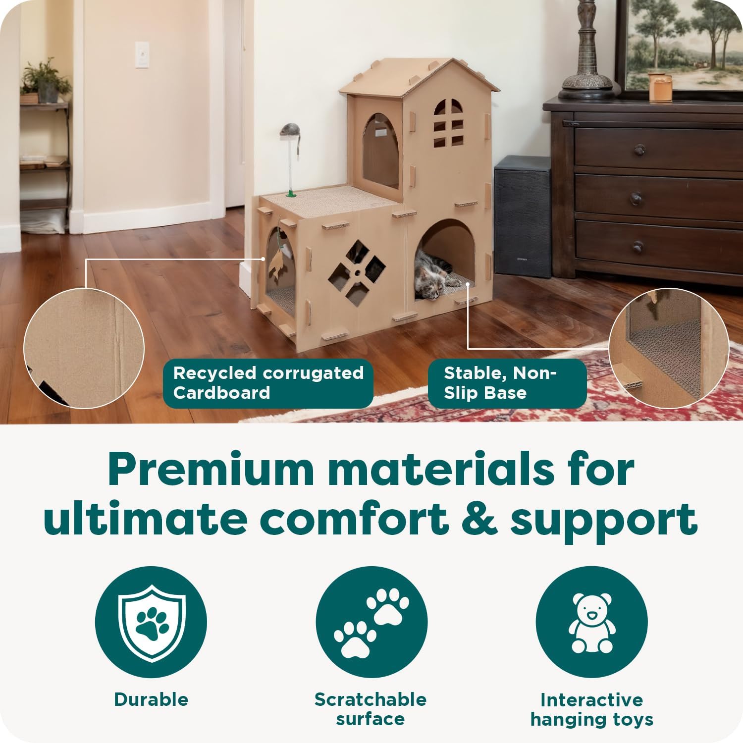 | Included Components | Cat Scratcher House, Detachable toys |