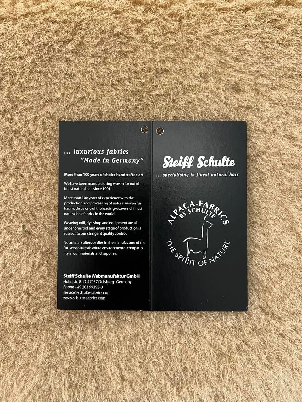 Mohair imported direct from simply the best mill for mohair fabrics! Steiff Schulte weave a truly magical quality into their fabric, making this the number one choice fabric for bear makers around the world. Article 20157 Color 5973 Finishing 109 Composition Pile : 100 % Mohair Backing : 100 % Cotton Weight 700 g/m