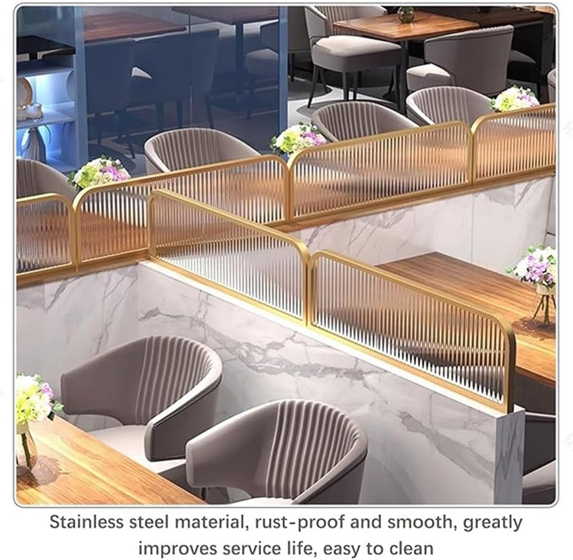 Enhance your dining experience with our versatile Dividers for Dining Areas, designed to elevate the ambiance while providing functional space separation. These elegant dividers serve dual purposes: they beautifully partition your dining space and act as stunning decorative elements. The Low Fence design effortlessly blends style and practicality, bringing vibrancy and sophistication to your dining room while ensuring the privacy of your guests. Ideal for restaurants, offices, hotels, and public areas, these dividers create a comfortable environment that encourages social interaction while maintaining safe separation. Crafted from high-quality stainless steel and glass, our privacy screen features a sleek white glass panel framed in gold, adding a touch of luxury to any setting. Easy to install and move, this divider is perfect for adapting to various occasions, whether you're hosting a special event or simply enhancing your everyday dining atmosphere. Invest in our Dividers for Dining Areas to create an inviting space that combines aesthetic appeal with essential privacy, making every meal a memorable experience. Packing List: 1 x Partition Screen.