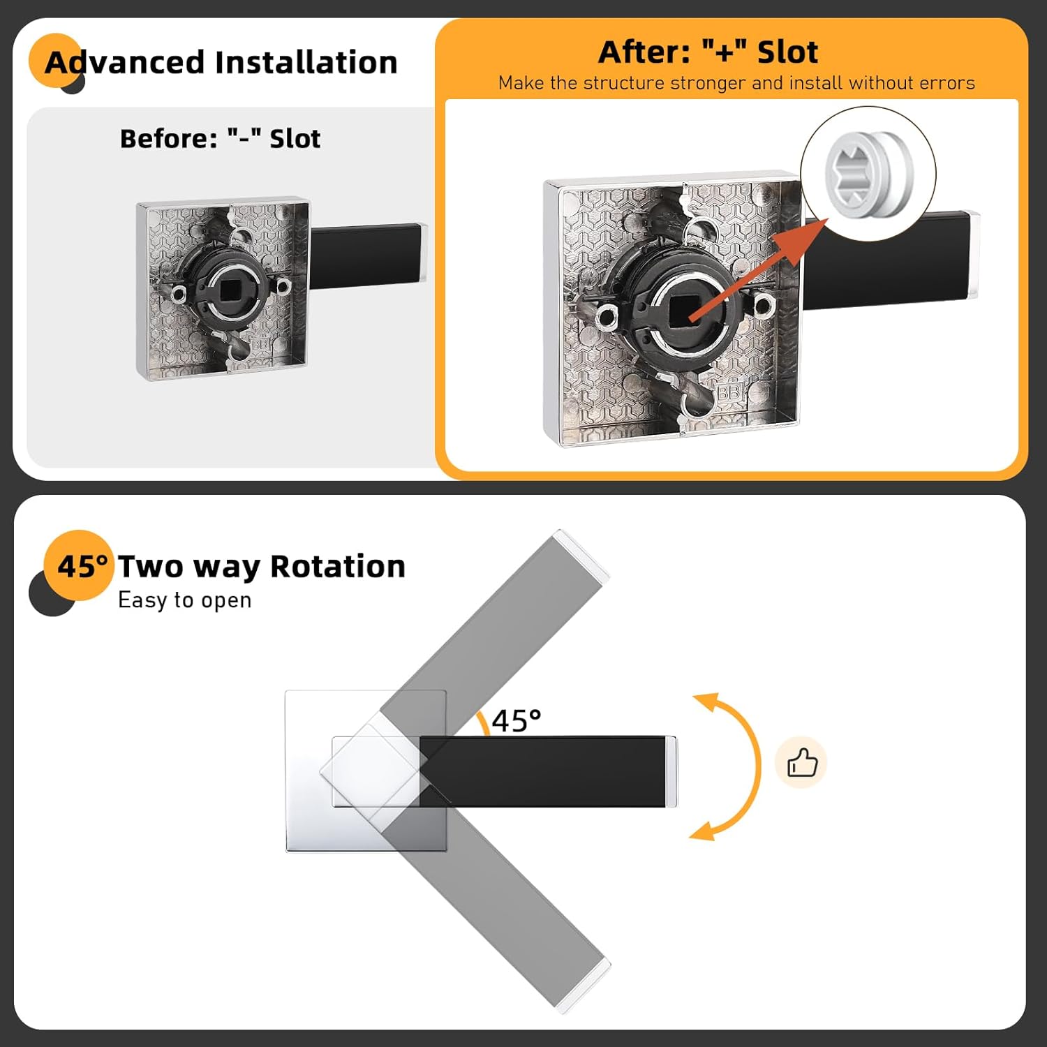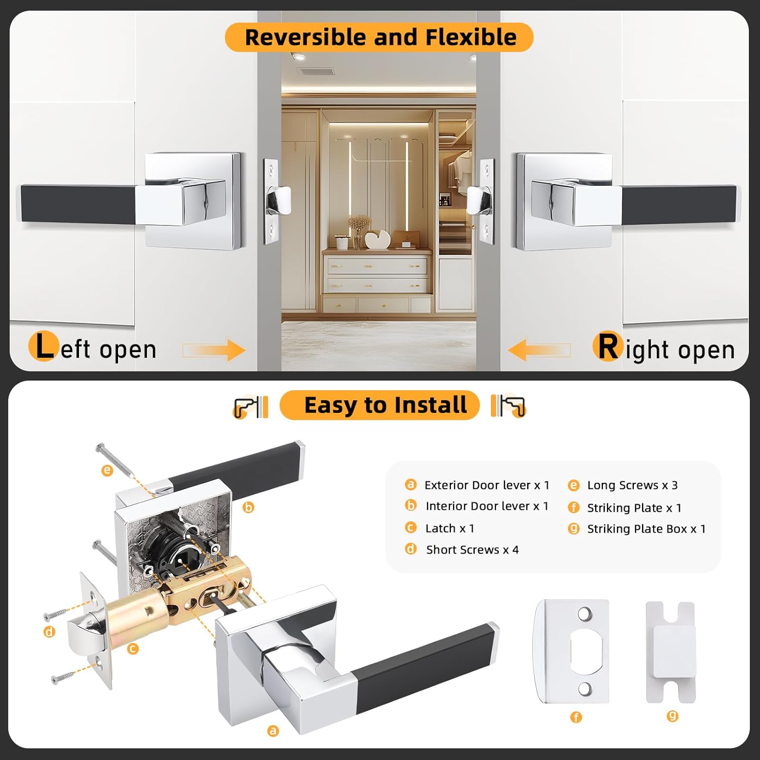 | Included Components | Exterior Lever, Interior Lever (Knob, Non-locking), Plastic Dust Box, Strike Plate, Adjustable Latch, Installation Instructions, 3 Long Screws, 4 Short Screws |