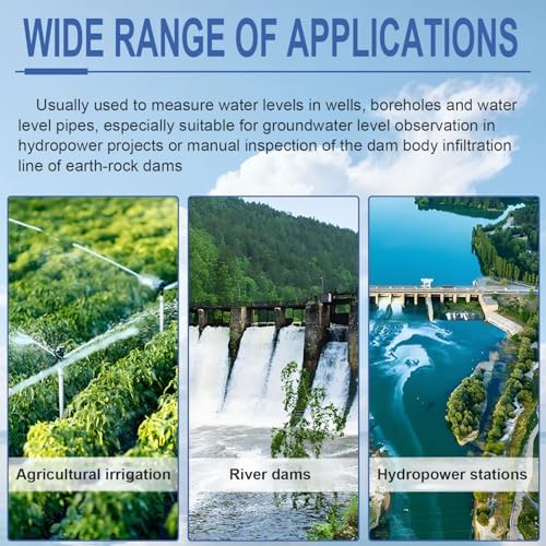 Introducing our Steel Ruler Water Level Gauge, a must-have tool for professionals seeking accurate groundwater level and borehole depth measurements. Designed with a rugged stainless steel probe, this device ensures durability and reliable performance in a variety of field conditions. The clearly marked d-yellow ruler cable allows for easy reading, making it ideal for engineers, landscapers, and construction workers who require precision in their projects. This water level meter offers a minimum reading of 1mm and operates effectively in temperatures ranging from -20 to +60°C. With a repeatability error of just 2mm, you can trust the accuracy of your measurements, whether you're assessing site drainage, installing wells, or performing environmental monitoring. Powered by a convenient 9V battery, this portable gauge provides flexibility in the field without the hassle of cords or external power sources. Available in multiple measurement ranges from 10m (3.28ft) to 200m (656ft), it caters to various engineering applications, ensuring you have the right tool for every job. With a packing size of 45×34×28cm (17.7×13.4×11 inches) and a weight range from 4.7kg to 6.5kg, this water level gauge is easy to transport and store. Remember to turn off the device after use to conserve battery life. Please note that slight color variations may occur due to lighting and monitor differences, and manual measurements may have minor discrepancies. Enhance your workflow with our Steel Ruler Water Level Gauge and experience the difference in measurement precision today!