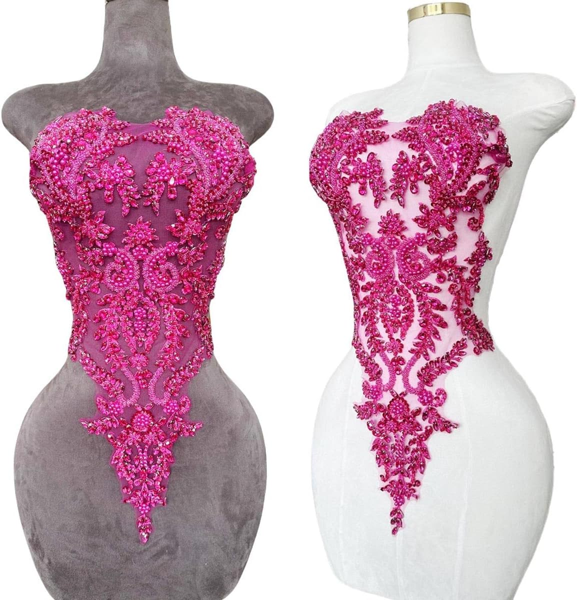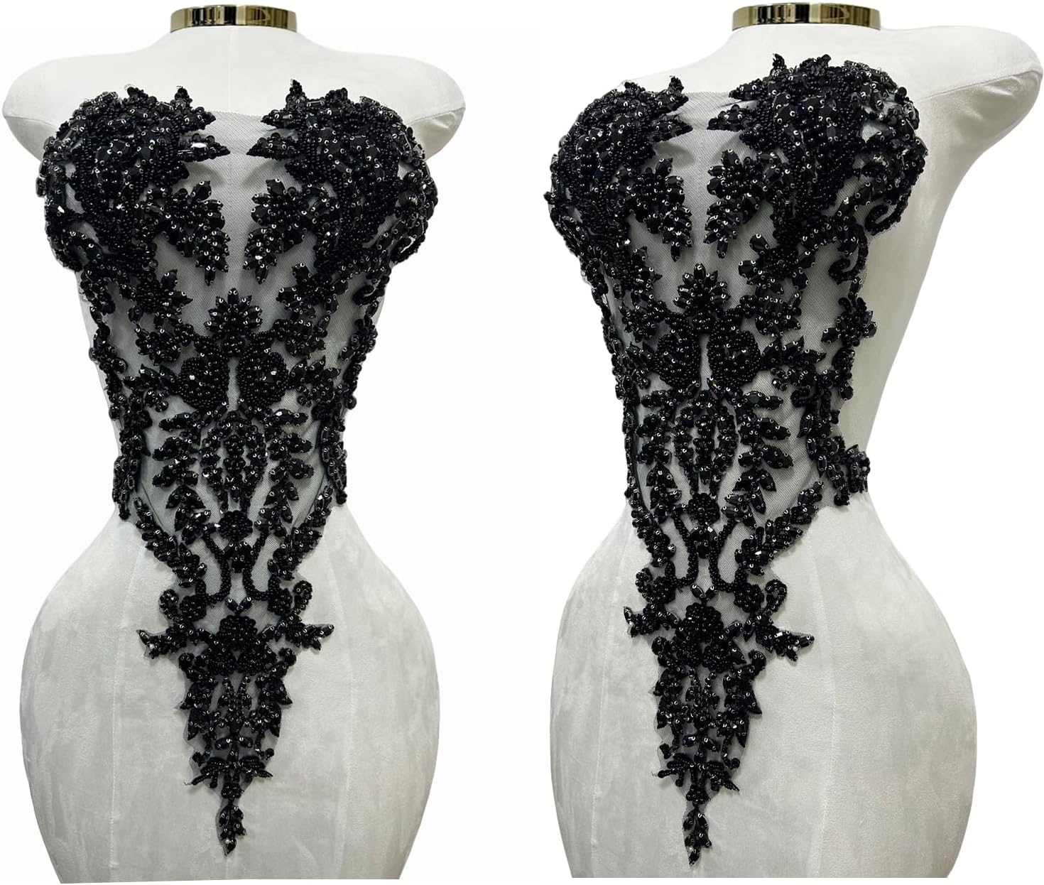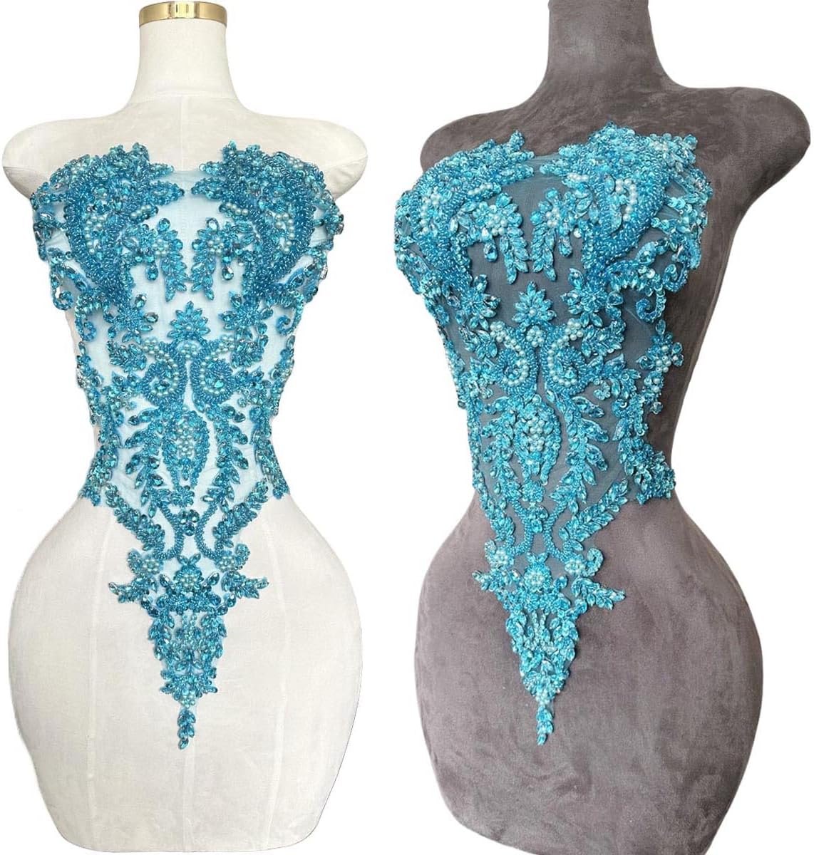 Introducing our beautiful handmade Rhinestones Lace Bodice Applique! This exquisite piece is perfect for adding a touch of elegance and sophistication to your dress or clothing accessories. Crafted from high quality beads and sequins, our beaded appliqué is sure to catch the eye and turn heads. Sew this stunning trimming patch onto any fabric of your choice and let the intricate detailing and sparkle do all the talking. Whether you're a fashion designer, DIY enthusiast or just want to add a bit of sparkle to your wardrobe, our Beaded Appliqué is the perfect accessory. Don't settle for ordinary, make a statement with our Handmade Rhinestones Lace Bodice Applique today!