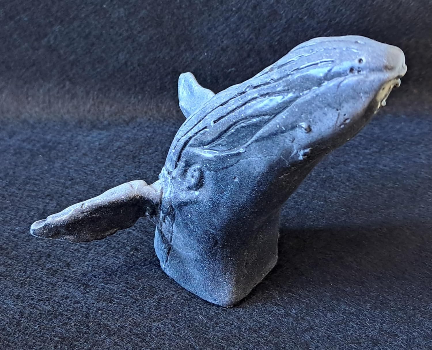 Dive into artistic excellence with this captivating handmade whale sculpture from Psychedelic Sushi Sculpture Co. This striking decorative figurine captures the majestic grace of a whale in mid-motion, expertly crafted with intricate details from nose to fin. The sculpture features a sophisticated grey stone-like finish that create a mesmerizing ombre effect. Standing as both an artistic statement and functional piece, this versatile sculpture can serve as an elegant paperweight or sophisticated desk accent. Each piece is lovingly handcrafted in the USA, making every whale uniquely special. The compact size (approximately 5 x 3 x 3 inches) makes it perfect for display on desks, shelves, or mantels. Weighing just 0.2 pounds, this lightweight yet durable piece brings a touch of marine majesty to any space. Whether for your own collection or as a thoughtful gift for ocean enthusiasts and art lovers, this whale sculpture represents the perfect blend of artistry and marine-inspired design.