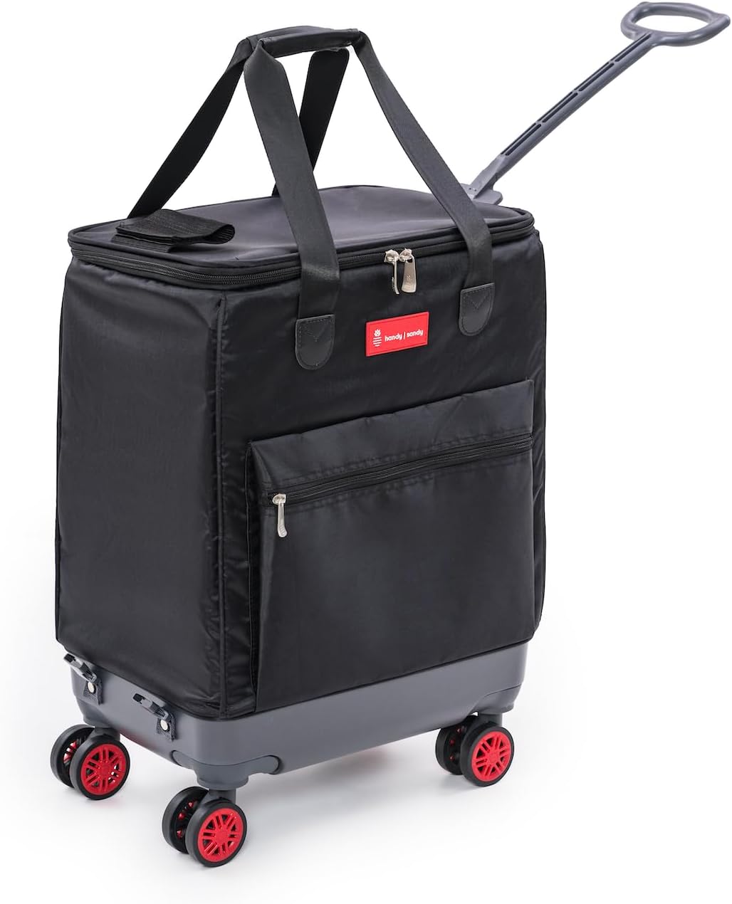 The Handy Sandy Roller Bag is more than just a reusable grocery bag on wheels—it’s a stylish, rugged, and practical solution designed to keep up with your busy life. Whether you're heading to the store, the laundromat, the airport, or a client meeting, this versatile tote rolls smoothly and handles your heaviest hauls with ease. Multipurpose by design, it replaces bulky carts and flimsy bags with a compact, durable alternative. Its foldable frame saves up to 80% of storage space, while the zippered closure and water-resistant build protect your belongings in any setting. From groceries and laundry to work supplies or travel gear, the Handy Sandy Roller Bag moves with you—and works as hard as you do. With eight balanced swivel wheels, you’ll enjoy effortless mobility on virtually any surface, while the angled ergonomic handle ensures comfort, even on long hauls. Whether you’re a city commuter, creative professional, or weekend adventurer, this is your go-to tote for hauling it all—with style, comfort, and ease.