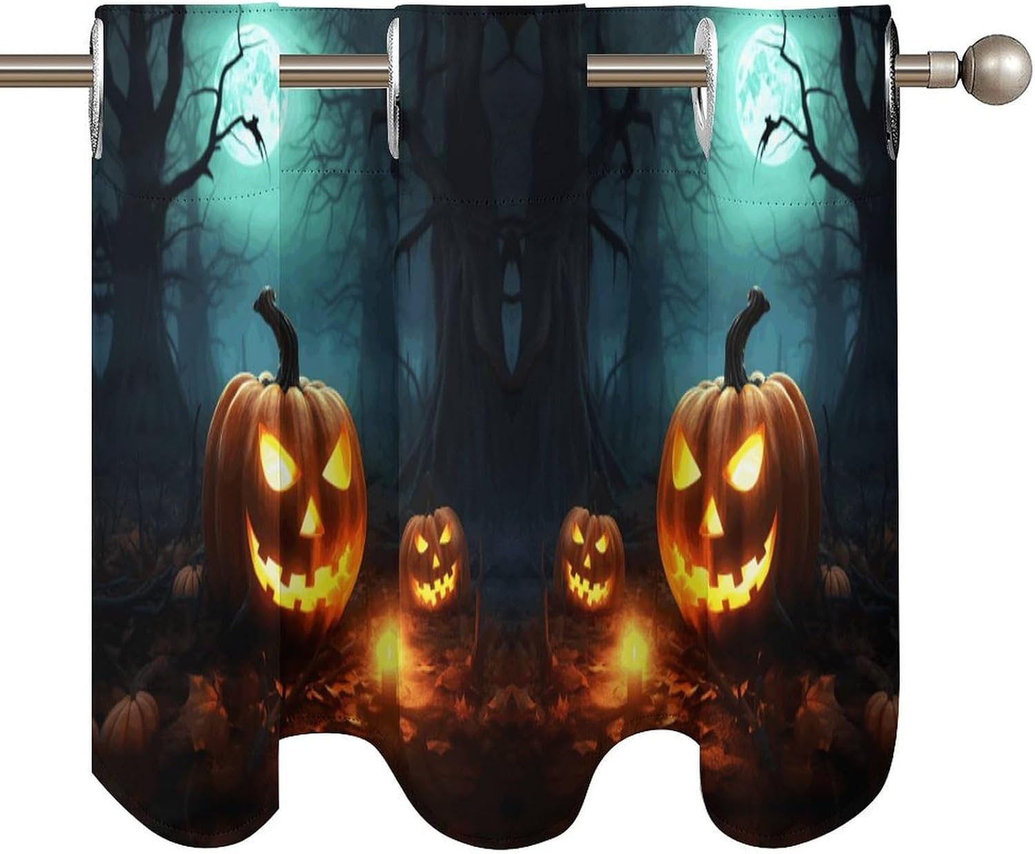 Happy Halloween Pumpkins printed Window Valance Is A Great Home Decoration That Matches Your Home Style. Short Curtains Are Perfect For Window Spaces In Your Living Room, Bedroom, Dining Room, Kitchen, And Bathroom. Grommet Valances Are Beautiful And Practical, Made Of High-Quality Curtain Fabric, Adding A Sense Of Design To Your Room. Small Tiers Curtains Are Suitable For Most Hanging Poles, With Smooth Opening And Closing, And Can Effectively Protect Your Privacy. Curtain Aperture: 1.77 Inches