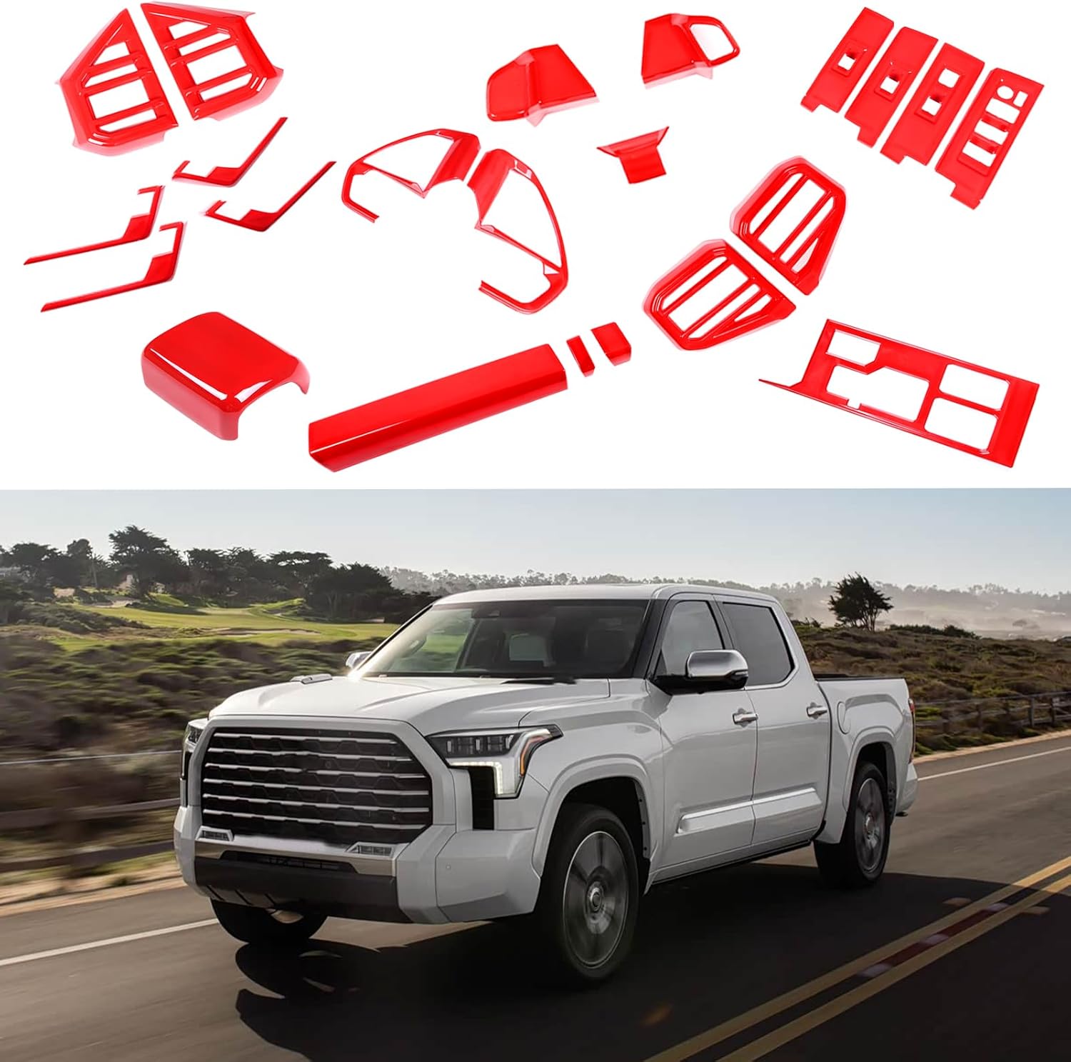 HAPPYHORSE: Offering a variety of automotive parts to enhance and upgrade your vehicle's appearance and functionality. We sincerely thank you for your decision to purchase our products, we are always committed to providing high-quality, safe car decoration products and excellent, professional client servers. 🎁 Package includes: Complete car interior kit decoration ✨ Before purchasing the product, please check whether your model is the same as the product to prevent buying the wrong product ✨ Product specifications: 100% brand new and high quality guaranteed ✨ Product features: Light weight, durable, scratch-resistant, beautiful appearance, good decorative effect, can cover existing scratches. Provide perfect decoration and protection for your car, giving your car a personalized appearance. ✨Easy to install: Easy to install and use, no drilling/tools required, self-adhesive design, will not damage your car. No residue remains after disassembly. ✨ Product Description: Car Parts Compatible with Toyot@ Tundra/Sequoia 2022-2026 ✨ Material: High-Quality ABS ✨ Easy to use and affordable. Installation Method✨:1) 3M tape on the back of the sticker. 2) Wipe the surrounding environment in advance to keep it dry and clean. 3) Just remove the tape and press it for quick and easy installation. 4) If the weather is cold, please use a hair dryer (hot air blowing) to provide the best viscosity. 5) Please keep it dry for at least 72 hours after installation. Otherwise it will fall off easily✨If you need help or have questions about your order, please contact us. We hope you never need it, but if you do, our service will be friendly and simple