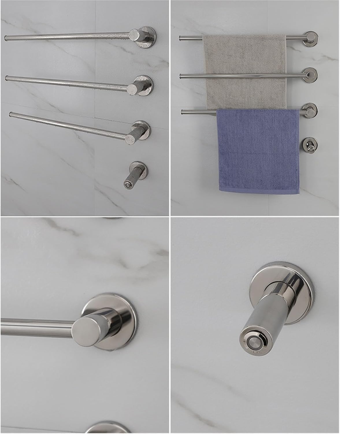Experience the ultimate solution for damp towels with our Stainless Steel Electric Towel Rack. Designed to keep your towels dry, warm, and ready for use, this towel warmer enhances your daily routine while adding a touch of elegance to your space. Constructed from high-quality 304 stainless steel, our towel rack is available in a stunning array of colors including silver, white, gold, grey, and black. Whether you prefer a sleek modern look or something more classic, there’s a perfect match for your bathroom, hotel, or spa. With options for 3, 4, or 5 bars, this towel rack offers versatile functionality for all your drying needs. Enjoy the convenience of quick heating in just 5 minutes, reaching an optimal temperature of 113°F (45°C) to ensure your towels are always cozy and inviting. The waterproof design (IP56) guarantees safety in humid environments, making it ideal for bathrooms and swimming pools alike. Installation is straightforward with a hard-wiring method that requires drilling, ensuring a seamless integration into your home. The compact design fits beautifully in various settings, from balconies to bathrooms, allowing you to enjoy warmth and comfort wherever you are. With your purchase, you’ll receive one towel warmer along with all necessary installation accessories. Please note, sizes may vary slightly due to manual measurement, and color may differ due to lighting conditions. Transform your towel drying experience and elevate your home’s comfort with our Stainless Steel Electric Towel Rack, the perfect blend of style and functionality for any environment.