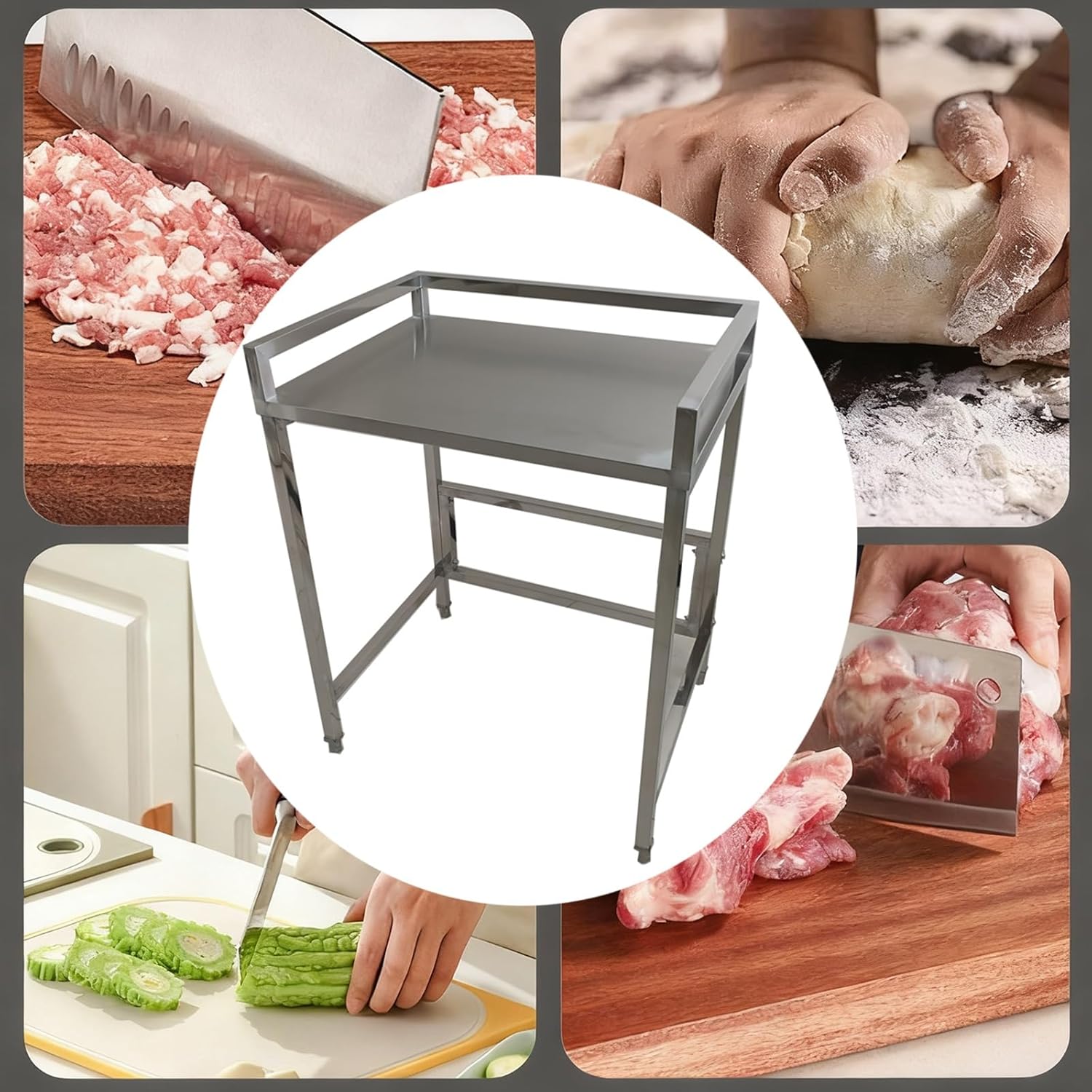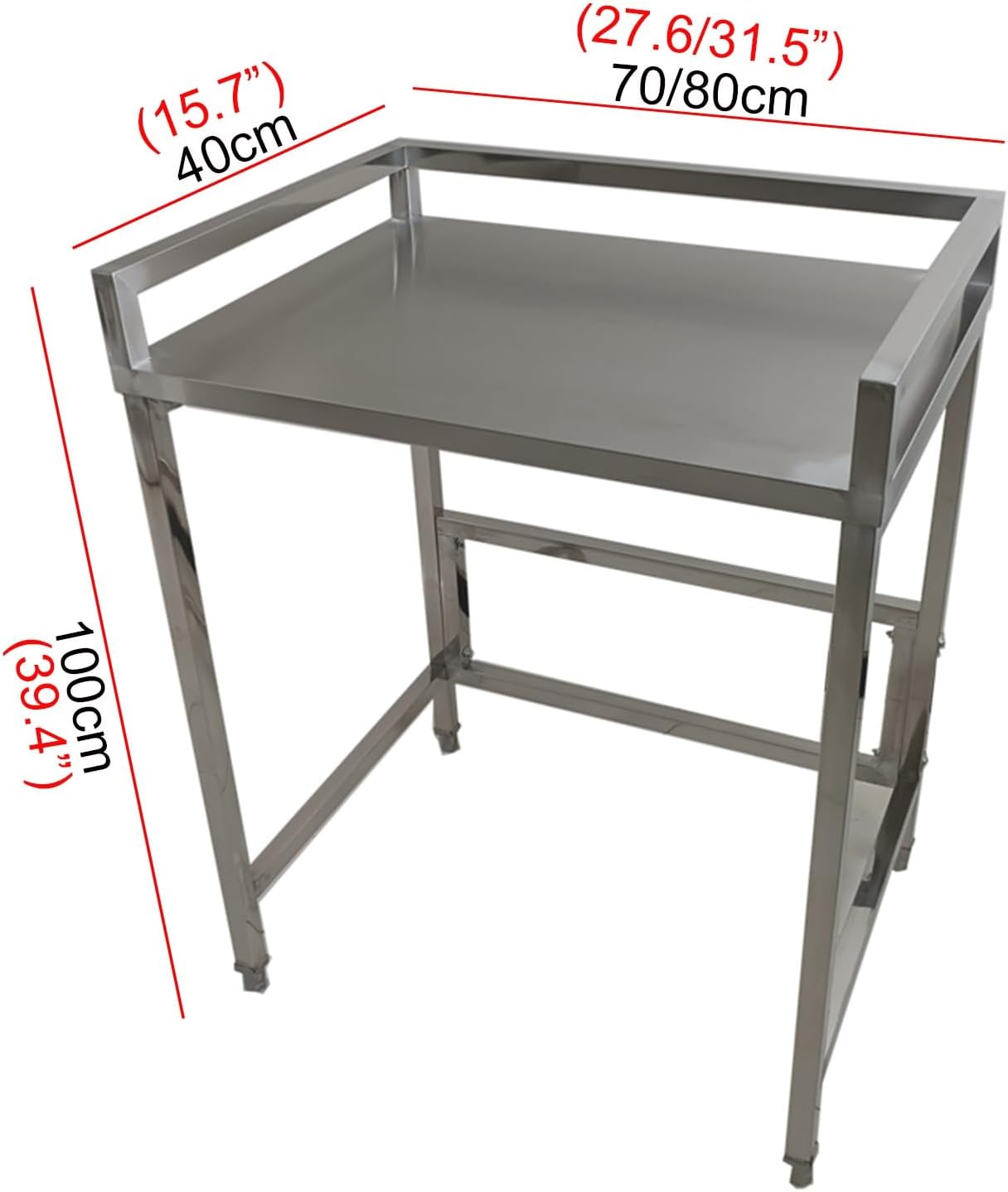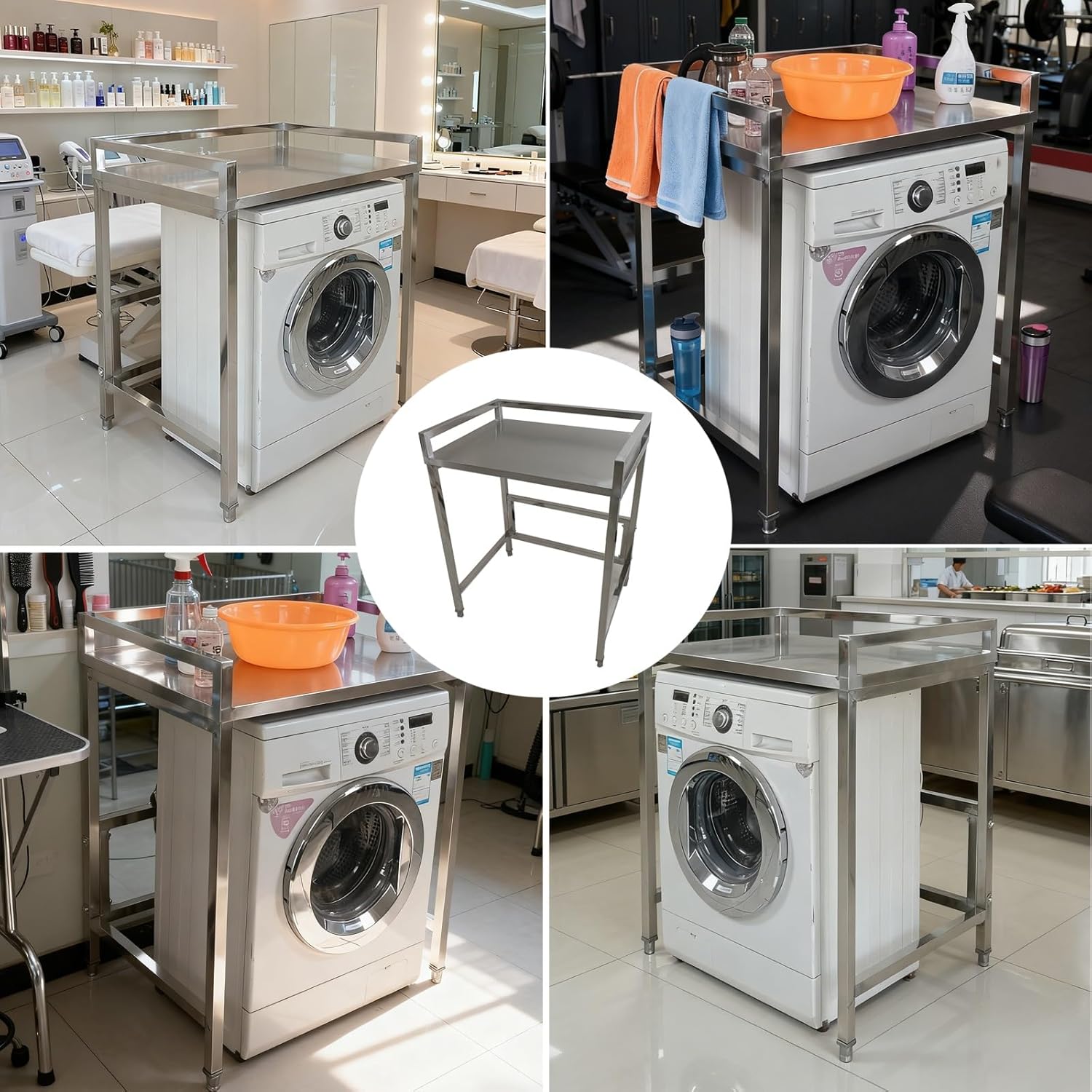 This versatile stainless steel workbench is suitable for laundry rooms, kitchens, or utility areas.The flat work countertop is supported by a sturdy metal frame with adjustable legs for stability on uneven surfaces.The smooth, easy-to-clean countertop simplifies maintenance, while the open frame design facilitates convenient storage of items underneath.Product Name: Modular WorkbenchMaterial: Heavy-Duty Stainless SteelDimensions:70x40x100cm/27.6x15.7x39.4” , 80x40x100cm/31.5x15.7x39.4” , 70x50x100cm/27.6x19.7x39.4” , 80x50x100cm/31.5x19.7x39.4”, 70x60x100cm/27.6x23.6x39.4”, 80x60x100cm/31.5x23.6x39.4”Product ListWorkbench x1 (excluding under-counter washing machine)Important Notes:Slight welding marks may appear on stainless steel products due to manufacturing processes.Minor scratches may be present on stainless steel components.All dimensions are manually measured and may have slight variations.Slight color differences may occur in images due to varying shooting angles and lighting conditions.
