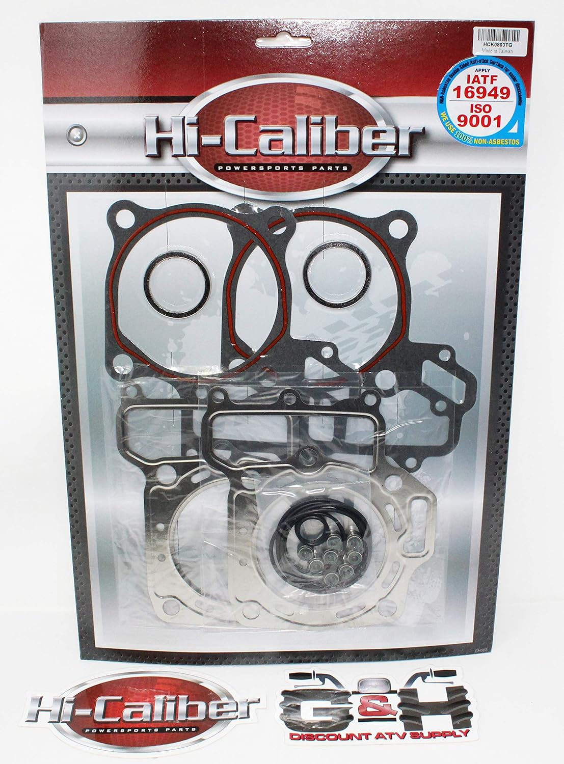 This is a Hi-Caliber Powersports Parts top end engine gasket kit for all years of the 2005-2013 Kawasaki KVF 650 Brute Force & the 2002-2003 Kawasaki KVF 650 Prairie four-wheelers. This gasket kit includes all of the gaskets you need when rebuilding the top end of your engine (it does not include the oil seals). Hi-Caliber Powersports Parts gasket kits are performance gaskets that are 100% non-asbestos and feature double sided anti-stick surfaces. If you need the piston kit, please check it out in our store. If you need the complete gasket kit for this model, you can find it in our store. This order will include a free G&H Discount ATV Supply and Hi-Caliber Powersports Parts decal.