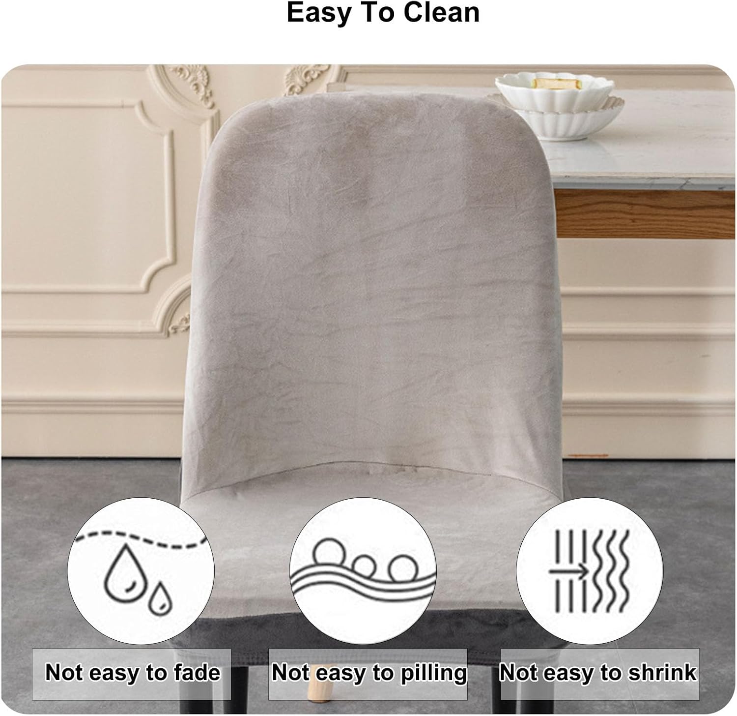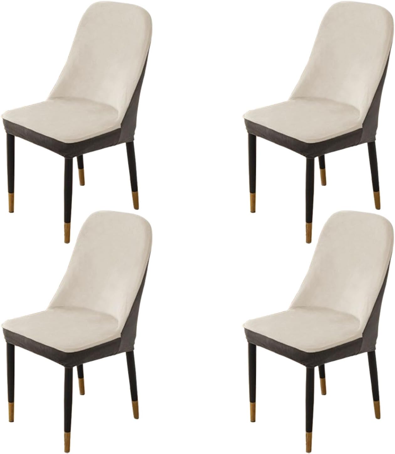 Product description---Does the ordinary chair cover not fit?---Are you still distressed that the chair is dirty and difficult to clean?---Do you still feel helpless because pets scratch expensive chair ?low cost restaurant stretch velvet Armless chair covers can refresh your old chairs, give your new chair full protection, extend the life of the chairs and help you save moneyIt can give your old or ugly modern arc round back chair a fresh look. Protect your round back chair from scratchesand damage.Very easy to install and remove washableNAME: Curved Armless chair coverMaterial: Polyester + Spandex FabricColor:Beige, gray, khaki, whiteItem Weight: About 190g(Quantity 1pc)Package: 2pcs / 4pcs / 6pcs * Chair CoversApplicable Seasons: All Seasons- Chair cover universal sizeBack height: 46-50 cm/18.11-19.69 inchBack width: 37-41 cm/ 14.57 -16.14 inchSeat width: 43-47 cm/16.93-18.50 inchSeat length: 39-43 cm/15.35 -16.93 inch- Please measure your chair before ordering.- Washing recommendationsWashable and machine washable, do not bleach, not ironing, hang to dry or tumble dry at low temperature.Tip 1: Please allow 1-2cm error due to manual measurement.Tip 2: The chair covers are universal size, not a fixed size tailored for a certain chair.Tip 3: The colors of different environments may be slightly different, please refer to the actual product you receive.