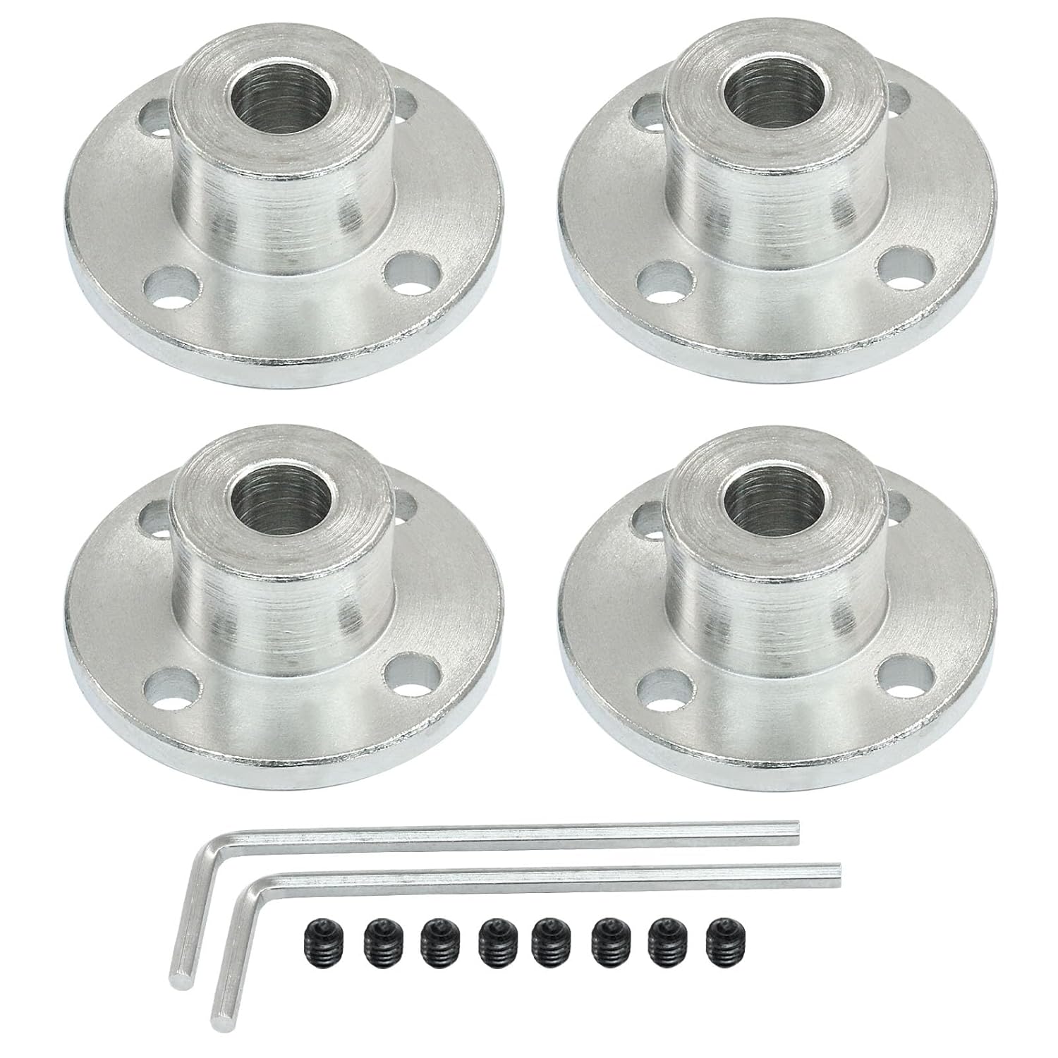 Hordion 3mm Flange Shaft Coupling Connector, Rigid Flange Coupling Model Coupler Shaft Axis Fittings for DIY RC Model Motors Feature: 1.This meticulous engineering prevents separation during operation, enhancing the performance and reliability of your model motors. 2. Specifically designed for model shaft connections, these couplings serve as essential accessories for RC model motors. Specification: Product Name: Flange Coupling Connector Material: Iron Color: Silver Detail Size: As the Picture Shown Package Include: 4 x Flange Coupling Connector 2 x M1.5 Hex Wrench