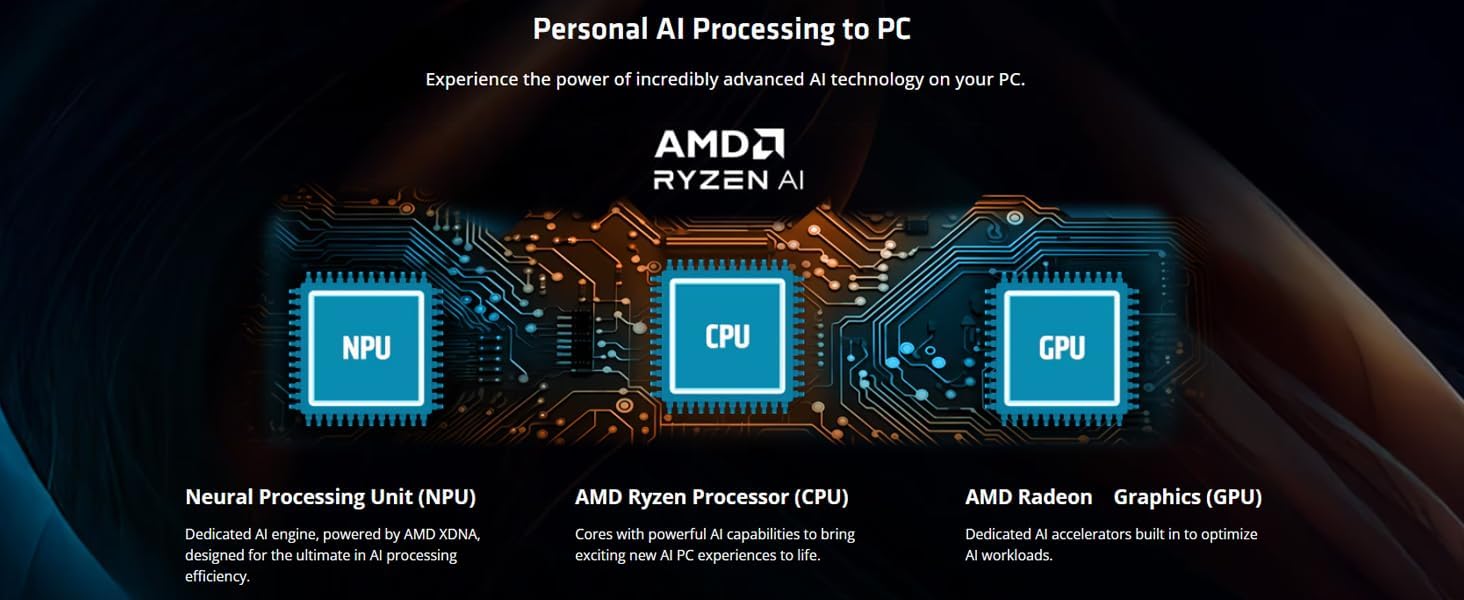 We sells computers with upgraded configurations. If the computer has modifications (listed above), then the manufacturer box is opened for it to be tested and inspected and to install the upgrades to achieve the specifications as advertised. If no modifications are listed, the item is unopened and untested. On-device AI experiences refer to situations where AI tasks are performed directly on a device rather than sending data to a cloud server for processing. This means the device uses its own processing power and local data to achieve AI-powered functionalities The Advantages of Copilot+ PC: 1, Local Processing: On-device AI involves running AI models on the device itself, eliminating the need to send data to the cloud. 2, Enhanced Privacy: By processing data locally, users retain more control over their personal information and can avoid exposing it to potential security risks. 3, Faster Performance: On-device AI can lead to faster response times because there's no latency associated with data transmission to and from the cloud. 4, Offline Functionality: On-device AI allows AI-powered features to work even without an internet connection, making them more reliable in various situations. 5, Improved Security: Since data processing occurs locally, the risk of data breaches or hacking is reduced. 6, Power Efficiency: By reducing reliance on cloud processing, on-device AI can improve battery life on devices. Processor: AMD Ryzen AI 5 340 processor with AMD Ryzen AI (50 NPU TOPS) Graphics: AMD Radeon 840M Graphics Memory: 16GB LPDDR5x Memory (RAM) Hard Drive: 512GB PCIe Gen4 NVMe M.2 Solid State Drive Operating System: Windows 11 Home Display: 178-degree wide-viewing angles; 16-inch 2K (1920 x 1200) touchscreen with IPS Display Integrated keyboard: Backlit Keyboard Connectivity: Wi-Fi 6E (2x2) and Bluetooth 5.3 wireless card Audio Technology: DTS: X Ultra Speaker Type: Poly Studio with dual speakers Camera: HP 5MP IR Camera with HDR Switch Ports: 1x USB Type-C (40Gbps signaling rate, USB Power Delivery, DisplayPort 2.1, HP Sleep and Charge), 1x USB Type-C (10Gbps signaling rate, USB Power Delivery, DisplayPort 2.1, HP Sleep and Charge), 2x USB Type-A (10Gbps signaling rate), 1x Headphone/microphone combo, 1x HDMI 2.1 Color: Meteor Silver Weight: 4.18 lbs Dimensions: 14.02" W x 9.67" L x 0.61" H Battery: 4-cell, 65 watts Li-ion polymer battery Accessories: 256gb 9H Docking Station