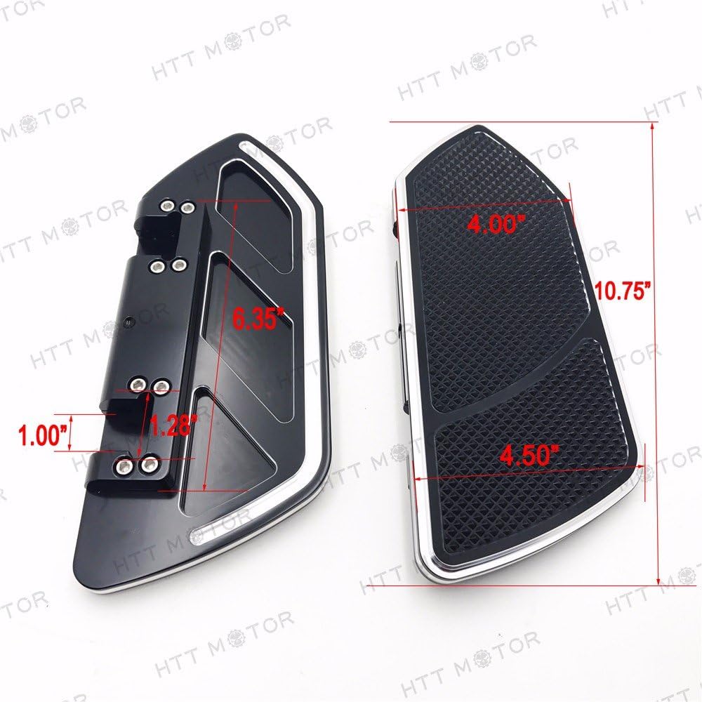 Attributes: These Floorboard are the perfect replacement for your factory one.Regular replacement of Floorboard can prevent accident and maintain bike performanceThis item is in high quality and suitable for daily use.These Rear boards are longer and wider than stock boards, giving your feet room to move around on long ridesRubber laid in a pocket on the top surface to provide traction & keep the board looking goodEasy installation! Specifications: Material: High Quality AluminumColor: Same as picture shownCondition: 100% Brand NewPackage Includes:1 pair FootpegsInstructions not includedPosition: Rear Fitment: Fits 1984-2015 all Touring models and Softails (EXCEPT 2006 and later VRSC V-Rods) NOTICE: When install the floorboard,using the Thread-locking Adhesives on the bolt and screw.