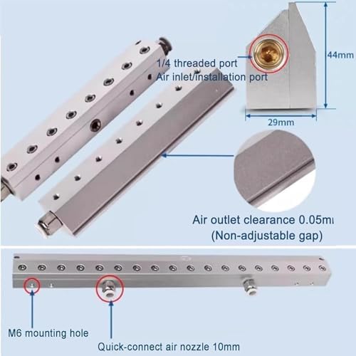 Introducing our high-performance Air Knife Blower, designed for efficient air delivery and optimal performance in various applications. Crafted from durable aluminum alloy, this air knife is built to withstand rigorous use while providing exceptional airflow. With a choice of lengths ranging from 200mm to 600mm, our Air Knife Blower can be tailored to fit your specific needs, making it ideal for cleaning, drying, and cooling tasks in manufacturing and production environments. The internal thread of 1/4 ensures easy integration with your existing air systems, while the 10mm air inlet allows for a steady stream of compressed air, enhancing productivity. The air outlet clearance of 0.05mm, though non-adjustable, is engineered for maximum efficiency, providing a powerful and focused airflow that minimizes waste and optimizes drying times. Whether you are looking to eliminate moisture from products or improve the drying process in your workshop, this air knife is your go-to solution. Our Air Knife Blower not only improves operational efficiency but also adds value by reducing energy costs compared to traditional methods. It is perfect for industries such as automotive, packaging, and food processing, where precision and reliability are crucial. Invest in our Air Knife Blower and experience the difference in performance and efficiency. Upgrade your equipment today and take your operations to the next level.