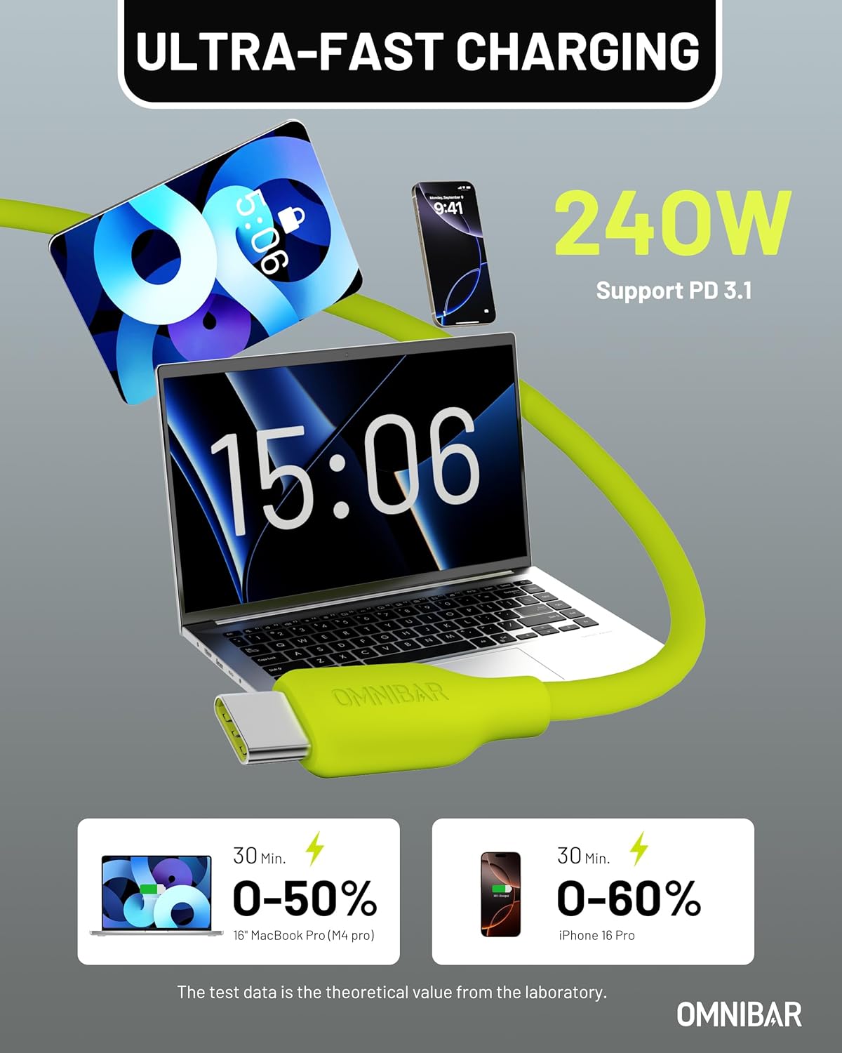 240W USB-C to USB-C Cable and 65W USB C Charger Block