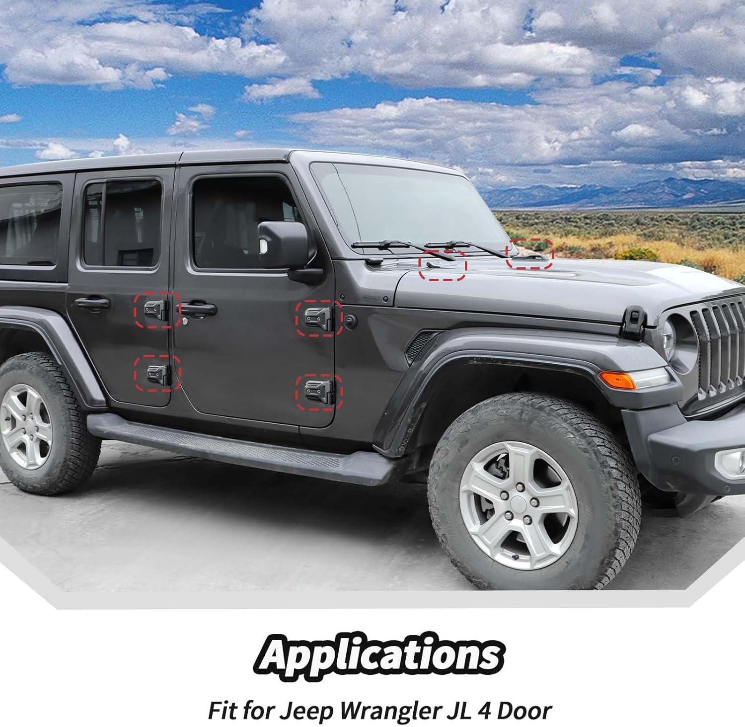 Welcome to JeCar JeCar Specializes in Designing Innovative, Personalized and Cool Car Accessories to Help Car Owners Enjoy the Fun of Redecorating Their Cars. Provide Customers with Convenient Car Tuning Products and Solutions. We Constantly Upgrade and Innovate the Products to Match Customers Evolving Needs of Auto Modification. From Interior to Exterior, JeCar Now Offers a Full Range of Automotive Accessories That Can Be Easily Shopped According to Demand. While Improving Product Design and Functionality, JeCar Strictly Controls Product Quality to Enhance User Experience. Item Description: JeCar Full Set Door Hinge Cover Trim Overlay for 2018-2024 2025+ Jeep Wrangler JL 4 Door Condition: 100% Brand New Material: ABS Color: Matte Black Features - Personalized custom design to create a unique look for your Wrangler JL; - Adding new beauty to your Wrangler JL body; - Show off your personality and coolness with distinctive accessories; - Protect your Wrangler JL door hinges from potential damage caused by external factors or daily wear and tear. - High-quality material, durable, with good durability, and weather resistance, bring long-lasting protection for your Wrangler JL; - Easy to install, no specialized tools required. Installation Tips: * Please clean the covered area thoroughly; keep it dry without dust; * Heat the adhesive tape with a hair dryer or lighter; * Paste the accessories in the corresponding position and press them with your hand to make them more solid. Package Included: - 8pcs Door Hinge Covers - 2pcs Hood Hinge Covers - 2pcs Tailgate Hinge Covers
