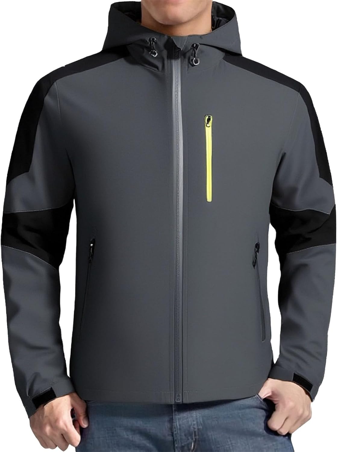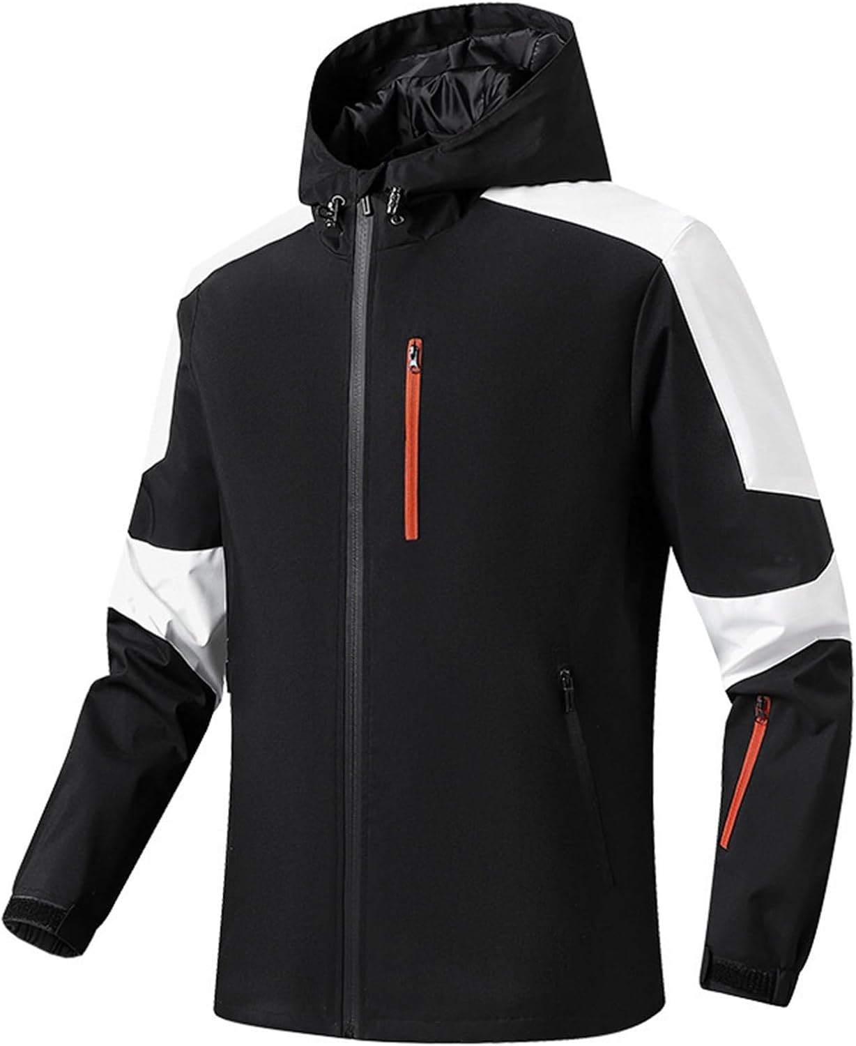 This JOFOW men's windproof jacket combines style and functionality for your outdoor adventures. Featuring a modern color block design with contrasting panels, this athletic jacket stands out whether you're hitting the trails or navigating city streets. The lightweight construction ensures you stay comfortable without feeling weighed down, while the windproof material provides essential protection against the elements. Multiple zippered pockets, including a convenient chest pocket and side hand pockets, offer secure storage for your essentials during hikes or daily activities. The adjustable hood with drawstrings allows you to customize your fit and protection level based on weather conditions. Long sleeves with fitted cuffs help seal out wind and cold air. This versatile cargo jacket transitions seamlessly from outdoor activities to casual wear, making it a practical addition to any wardrobe. Available in multiple color combinations to suit your personal style. Perfect for hiking, camping, running errands, or any active lifestyle pursuit where you need reliable protection without sacrificing mobility or comfort.