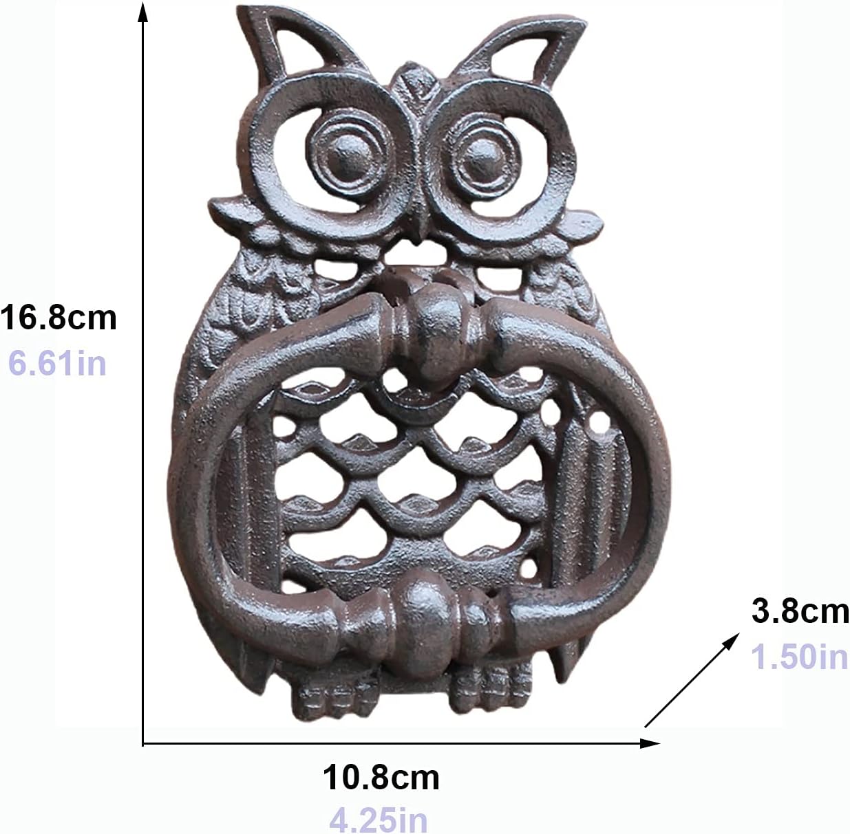Description:- The exquisite owl hollow design adds a personal style to your home Specifications:- Color: rust color - Material: Cast iron- Product Size: 16.8cm x 10.8cm x 3.8cm (6.61in x 4.25in x 1.50in) Features:- Unique design add a decorative appearance; can be personailized by engraving- They are durable and appealing to the eye, as well as functional- As a gift it is ideal for any occasion: House warming, wedding, birthdays and holiday gift Package Contents: - 1 x Knocker- 3 x screw Notice:- If you have any questions, please contact us immediately- Due to different measurement tools and measurement methods, there may be an error of 1-3cm- Due to light and different displays, the colors of the images may be deviated, please refer to the actual product