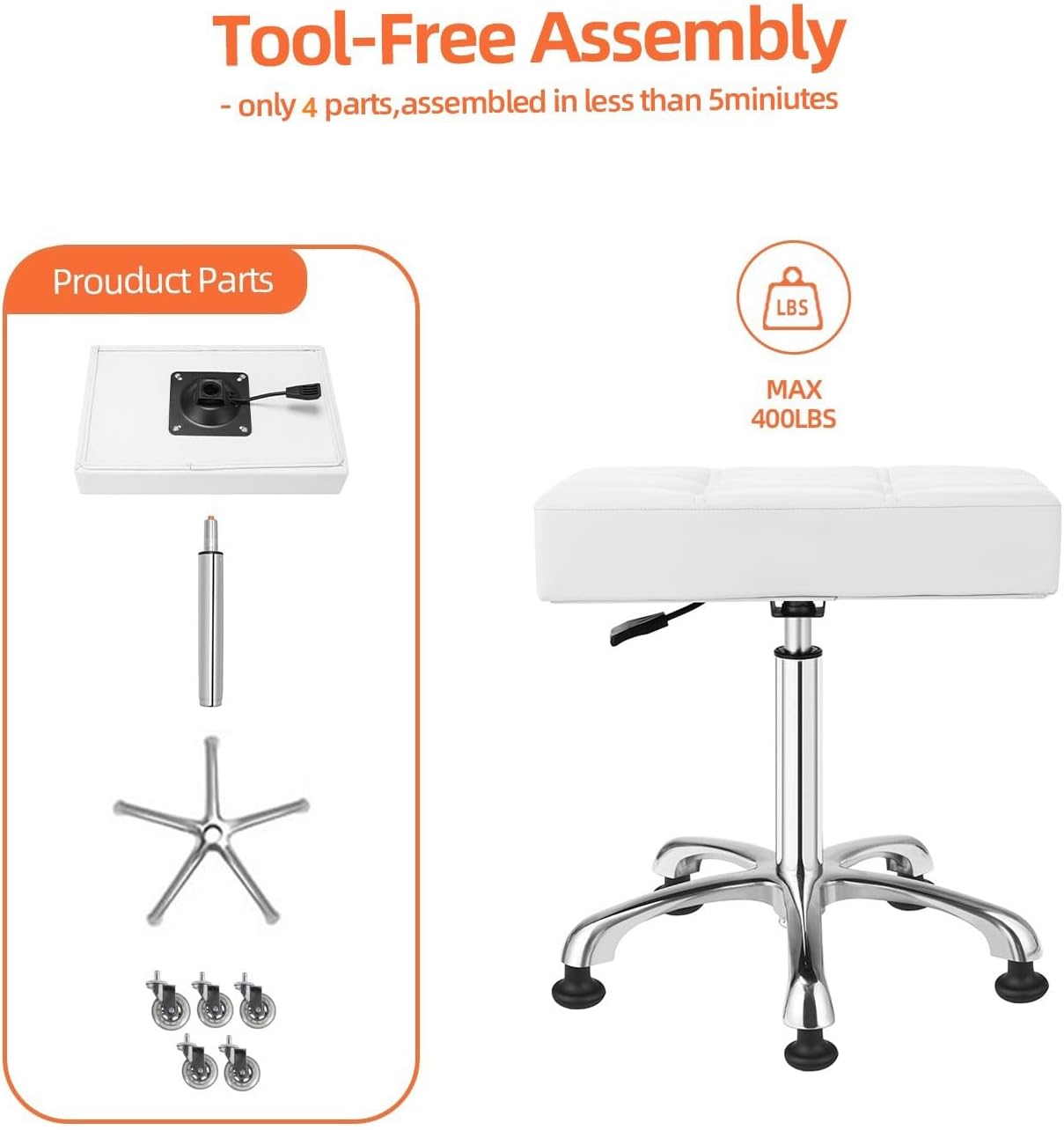 | Additional Features | 360-degrees Swivel, Adjustable Height, Heavy Duty |