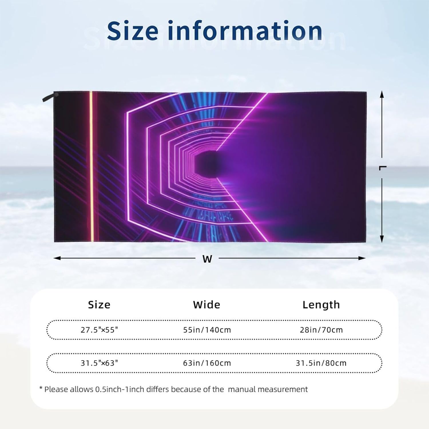 designNeon Lights Tunnel compact towel for camping are designed with one-sided printing. The towels are equipped with special packaging bags and carabiners, which are convenient for packaging and hanging, and can be hung anywhere to dry quicklymaterialcompact towels for swimming is made of microfiber, which is more absorbent than standard towels, dries quickly, is lightweight, and small enough to easily fit the towel into a gym bag or backpackscene cotton towel for beach carabiner on the bag, can be attached or packed into your bag, the beach towel can also be used as a sports towel, travel towel, yoga towel or used as a beach, bathing, swimming pool, swimming, boating, sunbathing, mats for spa, sauna, water park, climbing, fitness, yoga, travel, camping, hiking, picnic, travel, outdoor and sports, etccomponentbeach blanket for swimming have buckle webbing, easy to hang and air dry, pvc packaging bag, equipped with a carabiner, easy to store and carrywashinglightweight towel for swimming machine washable, wash before first use, just hand wash or machine wash, air dry