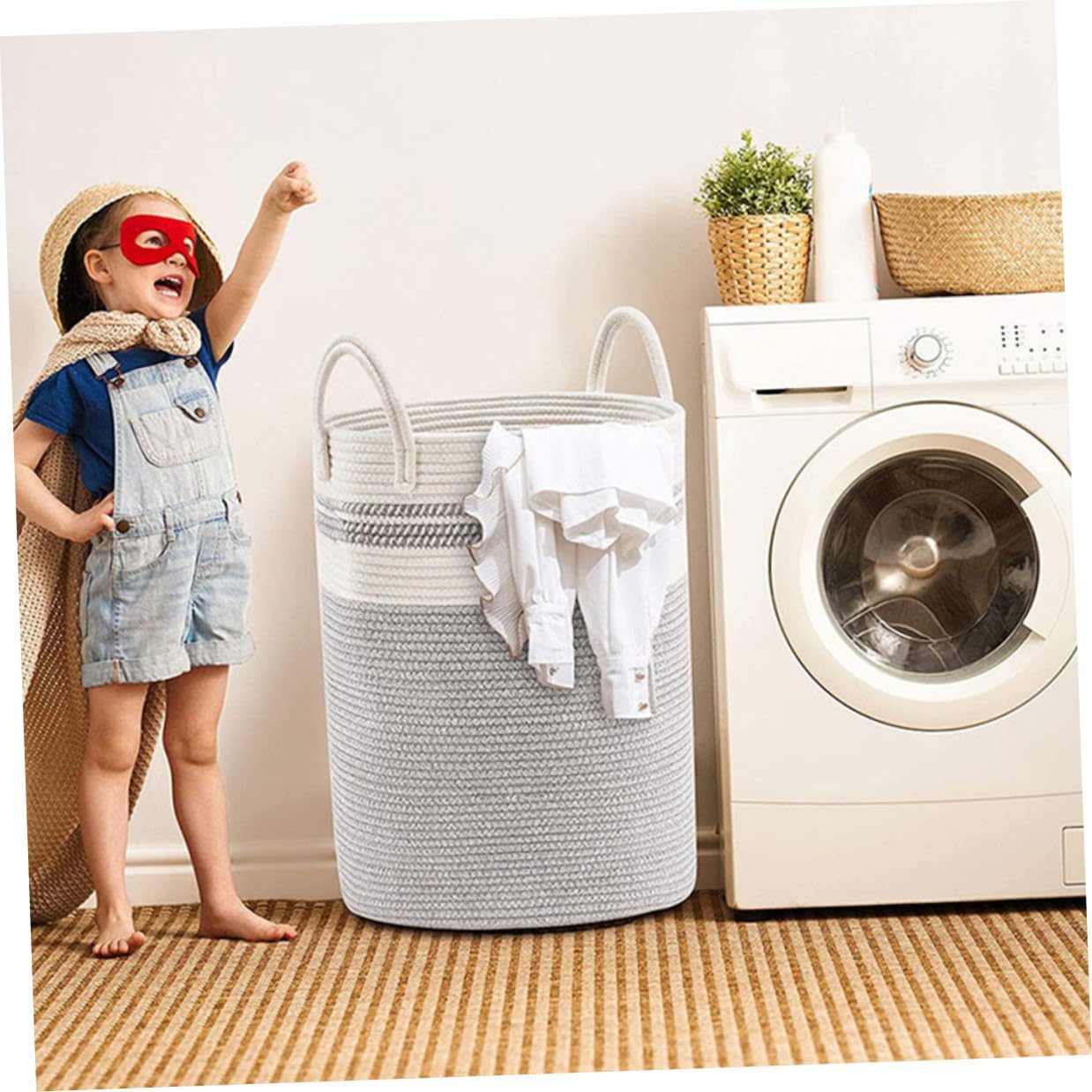 Package Include 1 x woven basket Features - Color: White and gray. -Product Info:Storage basket - Material: Cotton rope. - Size: 50.00X38.00X38.00cm/19.65X14.93X14.93in. - Beautiful baskets are also decorations in your living room and other places. Apart from changing clothes, daily dolls and are also very good storage basket. - It is also suitable for use in homes, restaurants and hotels, as long as there is a place to change clothes or gray weave basket. - The woven design is more natural and attractive, adding natural flavor to the home and life more comfortable woven storage basket. - It is made of cotton rope, which is hand-woven by hand, which is and can be used for storing and changing clothes for a long time laundry room weave basket. - The design is simple, but it is very practical to use, giving you a good experience and making your storage easier garden weave basket.Goods Informationhome decorative basket It has various functions and can be used as a basket to store laundry or .sundries storage container This storage basket is extremely comfortable, , foldable and flexible.office storage basket Suitable for most home decorations, safe for everyone and free of chemicals