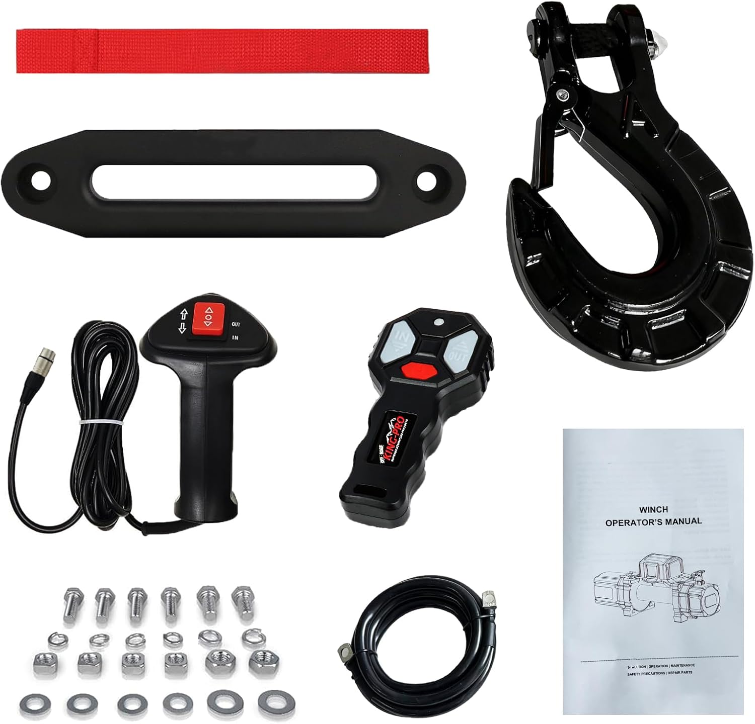KING-PRO 13500 lb Recovery Winch, 12V Electric Winch Kit with Synthetic Rope and Hawse Fairlead Wireless Remotes IP68 Waterproof for Jeep, SUV, Truck
