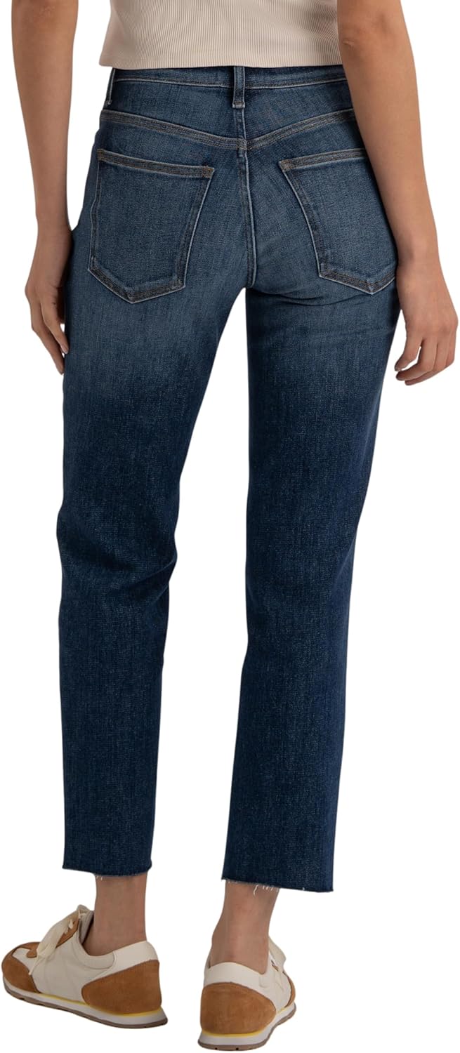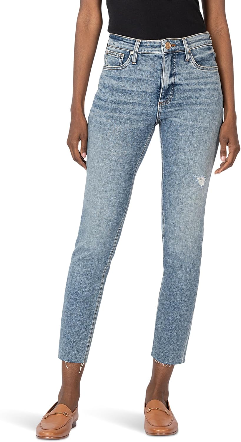 Perfect for the on-trend denim lover, the KUT from the Kloth Rachael High Rise Fab Ab Mom Raw Hem jeans are the must-have style. These mom jeans feature a high-rise fit with a tapered leg that gives a relaxed yet structured look. Made from cotton blend fabric in a medium wash, these denim jeans are finished with a zip-fly, buttoned closure, and belt loops. Stretchable and comfortable, these high-rise jeans make a trendy addition to your wardrobe. Relaxed fit. Five-pocket styling. 94% cotton, 5% polyester, 1% spandex. Machine washable.