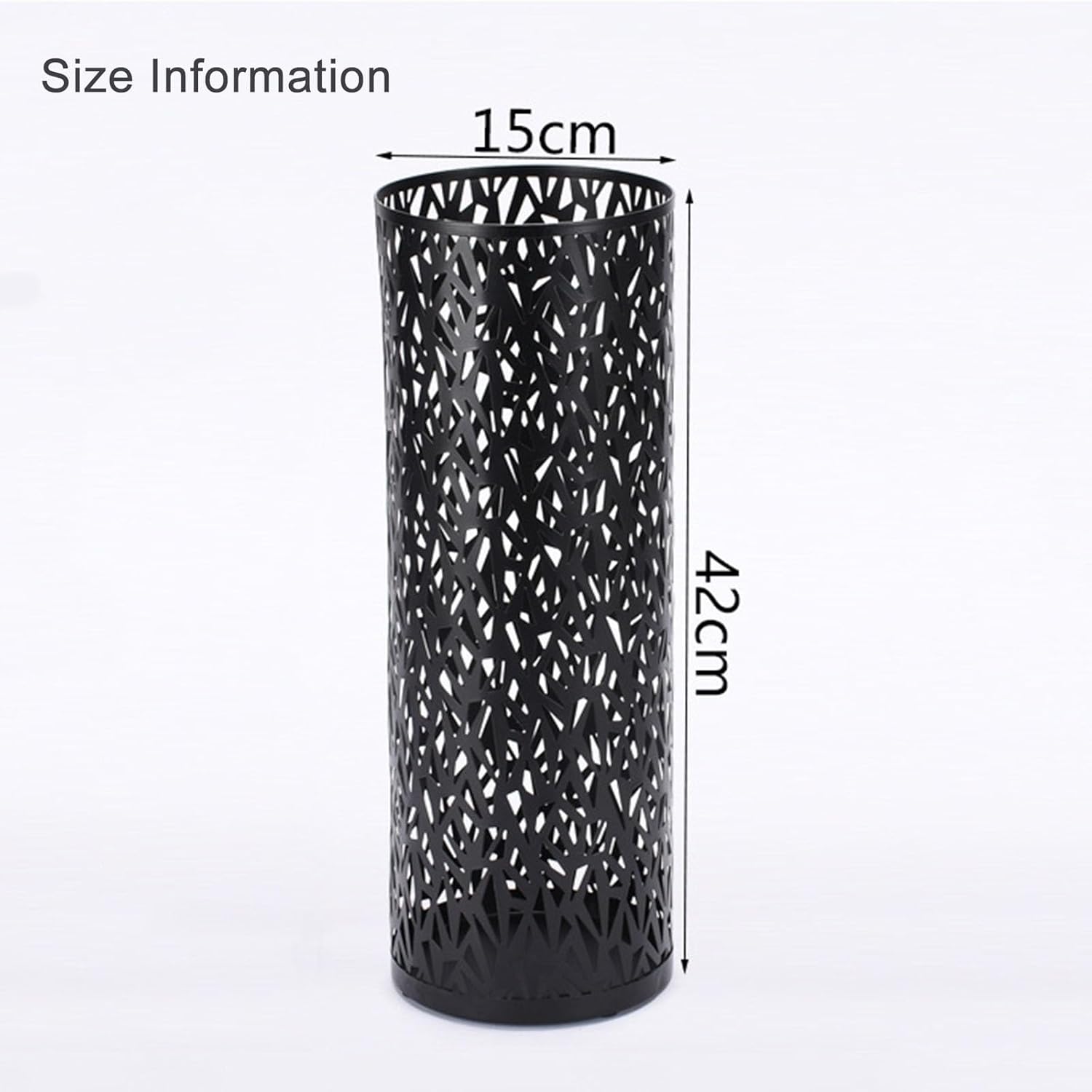 Keep your entrance, lobby, or commercial space organized and dry with our durable metal umbrella holder. Designed for longevity and functionality, this large-capacity cylindrical umbrella stand is ideal for high-traffic areas, providing a reliable solution for storing wet umbrellas while maintaining a clean and professional appearance. **Key Features:** - **Sturdy Metal Construction:** Built to withstand daily use, this umbrella holder is made from robust metal, ensuring durability in both commercial and residential environments. - **Sleek and Professional Look:** Its stylish metal finish adds a touch of elegance to any space, seamlessly integrating with modern decor. - **Easy to Clean:** The smooth interior surface allows for quick and hassle-free maintenance, ensuring long-lasting use. **Product Name:** Metal Round Umbrella Holder **Material:** Metal **Color Options:** Black, Gold, White **Dimensions:** 15 x 42 cm **Structure:** Barrel-style design *Note: As product dimensions are measured manually, there might be slight variations in the actual size. Color differences may occur due to monitor settings and resolutions. If you encounter any issues upon receiving your order, please reach out to us.* Enhance your space with our heavy-duty metal umbrella holder. Whether for home or office use, this high-capacity cylindrical umbrella stand is the perfect solution for keeping floors dry and spaces tidy. Order now and experience the perfect blend of durability, functionality, and style!