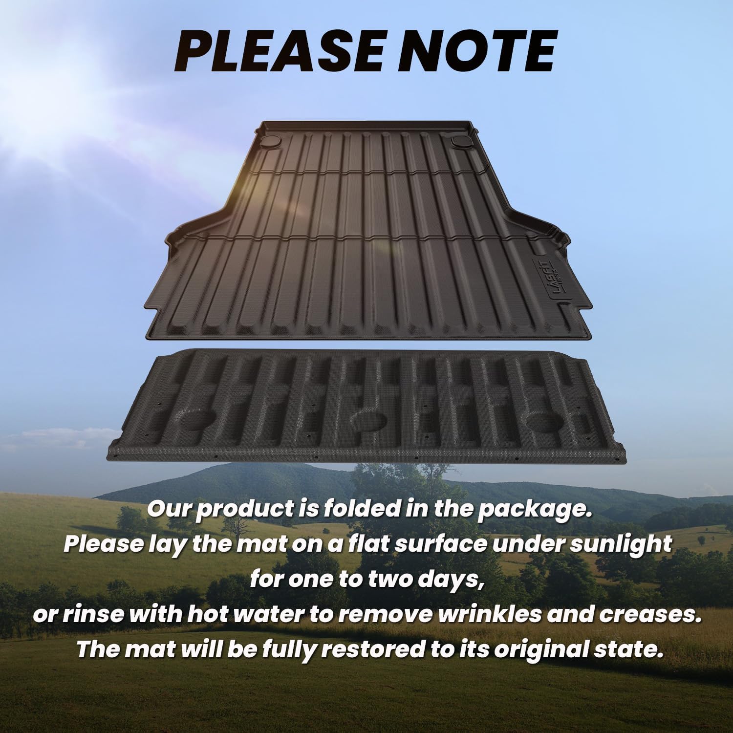 【CUSTOM FITMENT】These floor mats Custom fit for Ford Maverick Hybrid Models 2026 2025 2024 2023 2022(Not fit with Drop-in Liner). State-of-the-art 3D laser scanning technology ensures the LASFIT LINERS fit to your car carpets floor with full coverage. 【HEAVY-DUTY PROTECTION】 Whether you're transporting daily necessities, work equipment, outdoor gear, or other items, the heavy-duty floor mats and bed liner for the 2022-2026 Maverick provides robust protection for your truck bed and tailgate. It effectively guards against dents, scratches, and wear. The bed mat is designed to stay securely in place, preventing it from sliding or flying up, keeping your truck looking new and ensuring driving safety. Moreover, the heavy-duty mat provides exceptional knee protection during loading onto the truck bed 【WATERPROOF EDGE & NON-SLIP SURFACE】 Using 3D laser scanning technology, the tailgate and bed liner for 2022 2023 2024 2025 2026 Maverick models are precisely designed to fit your truck bed contours well, providing comprehensive edge-to-edge coverage. The raised edge design around the perimeter effectively prevents dust, water, snow, and other debris from entering the truck bed. The textured surface design prevents cargo from slipping and ensures efficient drainage, keeping your truck bed clean and in excellent condition 【100% TPE & ALL-WEATHER PROTECTION】 The tailgate and bed floor mats is made of 100% high-quality TPE material, resistant to deformation, and durable, maintaining its shape over the long term. You don't need to worry about seasonal high temperatures or extreme cold weather. It protects your Maverick Hybrid & Gas 22 23 24 25 26 4.5FT bed and tailgate from dust, mud, rain, and snow without cracking or splitting. When it gets dirty, simply rinse it with a water hose for a quick and easy cleanup