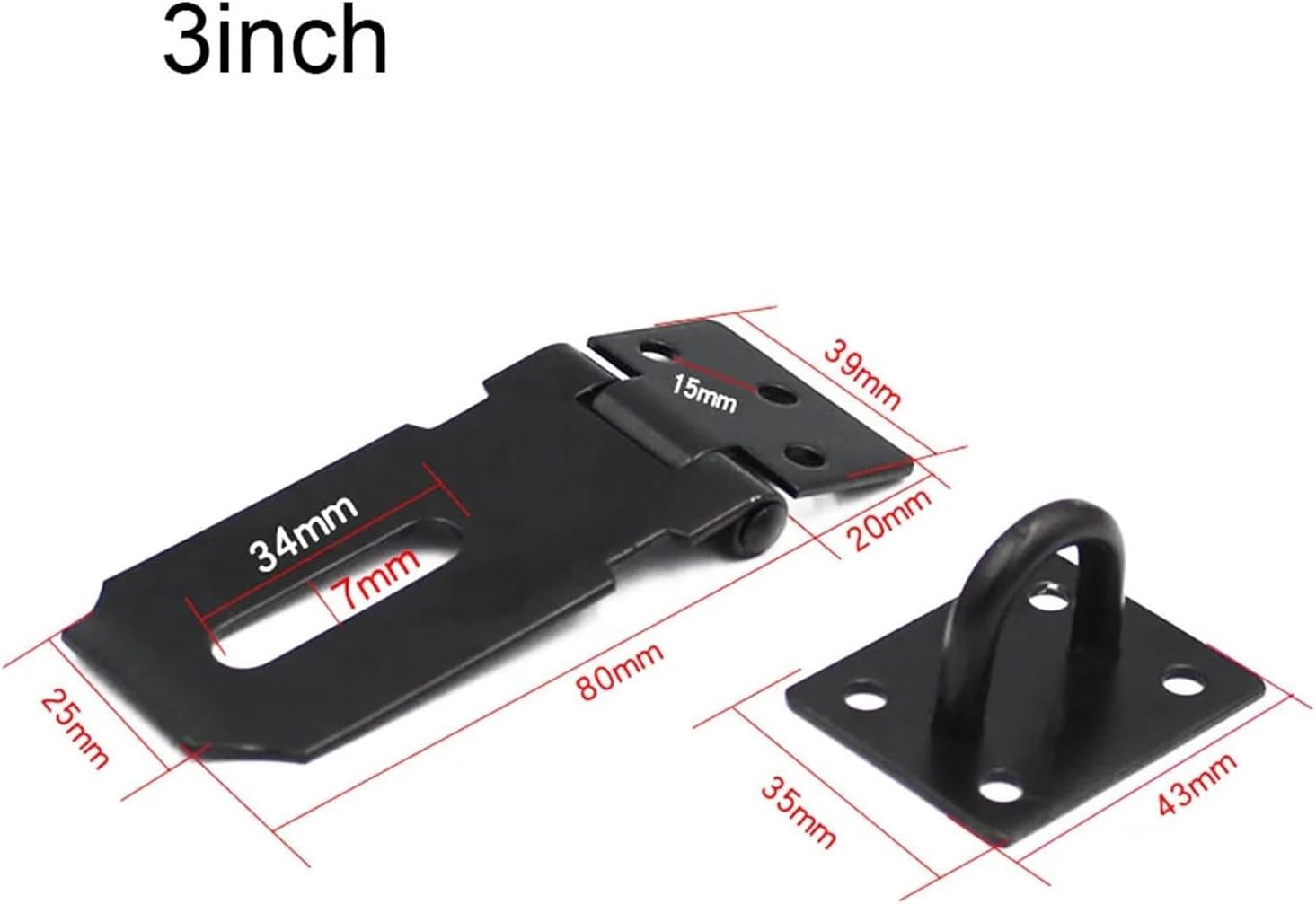 Features:* Ideal for securing all kinds of doors, residential gates, sheds, cabinets, drawers, cupboards, storage containers and luggage.* Easy to install, no sharp edges for safety, just use the included mounting screws to fix it.* Fully polished, simple and exquisite, ideal match with modern home, the brushed surface makes it more beautiful.* Made of strong stainless steel.Specification:* Material: Stainless steel* Color: Black, Silver* Surface treatment: high anti-corrosion brushed treatment* Scope of application: doors, cabinets, boxes, drawers, etc.* Size: 3 inches, 4 inches, 5 inches * Quantity: 1PCSPackage content:1 x Stainless Steel Lock Plate (Screw Included)Note:1. Due to various factors such as monitor brightness and light brightness, the actual color of the product may be slightly different from the picture displayed on the website.2. Please allow slight manual measurement deviation in the data.