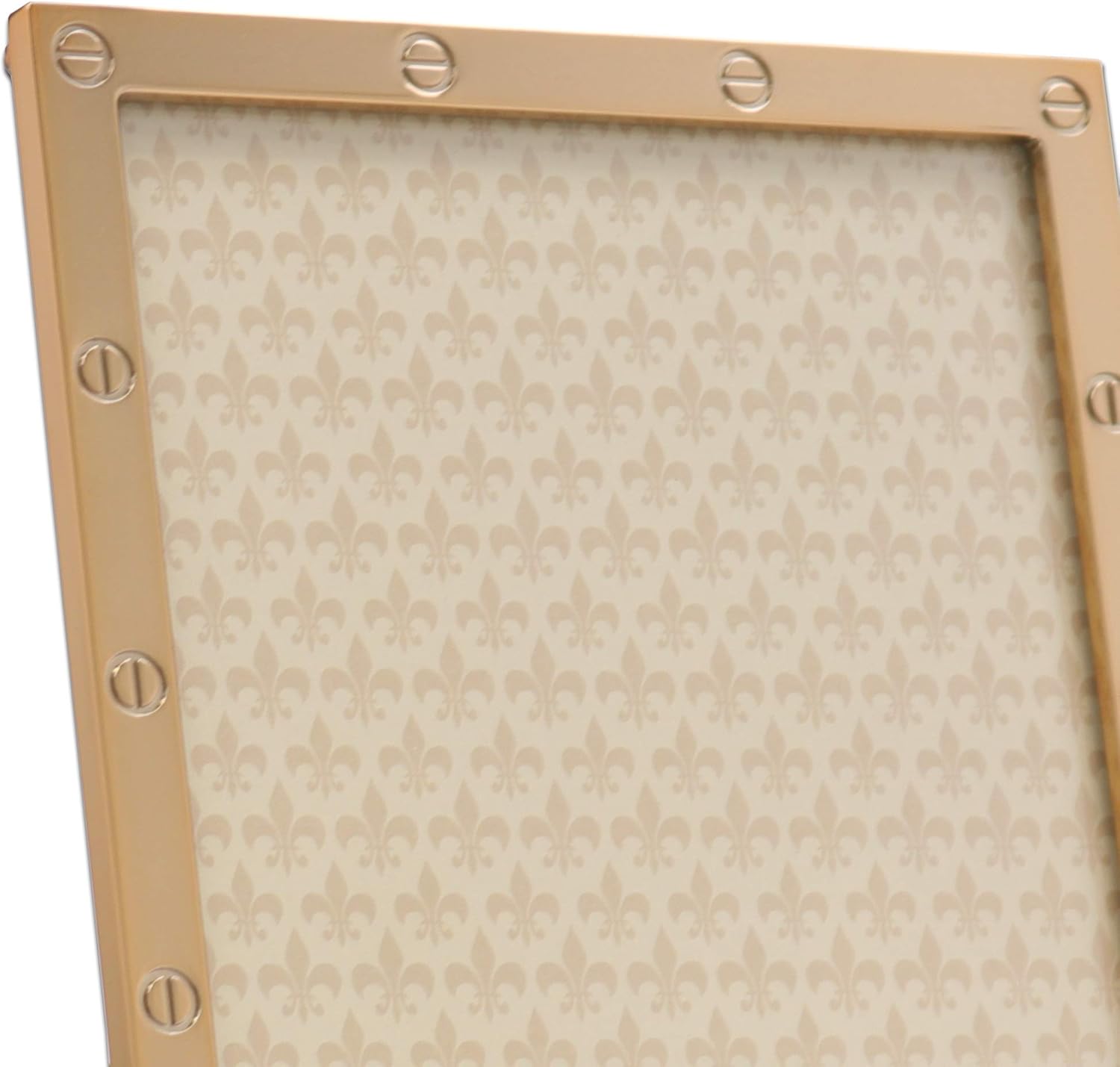 Gorgeous polished gold metal picture frame with elegant screw head design . This heavy weight cast metal frame has a rich and lustrous gold finish. High quality black velvet backing with easel for vertical or horizontal tabletop display, and comes with hangers for vertical or horizontal wall mounting. This beautiful and decorative metal picture frame is made with exceptional workmanship and comes with glass to protect your photo and is individually boxed.