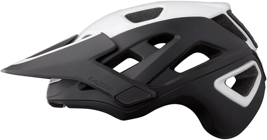 Stylish practical MTB helmet. Color: Matte White Black / Size: M - The Lazer Jackal by Lazer is a stylish and practical helmet for trail riding. The Lazer Jackal by Lazer excels on the way up and the way down, with plenty of ventilation plus enhanced protective features. Throw in goggle compatibility, an adjustable visor, and removable light/camera mount and you have the perfect helmet for trail riding. - Use: MTB/Downhill - Size adjustment system: Advanced Turnfit Ats. - Ultra-light magnetic closure is easy to open and close even with gloves on. - Action camera mount included - Visor adjustable to 4 different positions. Easy to adjust, even while riding - Goggle Strap Grip (goggle strap fixation) ensures goggles stay securely in place in all riding situations - Ventilation system with intake and exhaust ports ensures maximum cooling - Small cut-outs in the helmet shell above the ears allow any goggles to be worn - Ventilation openings: 19 - Weight: 370 g (size S) The Lazer Jackal by Lazer is available in three sizes: - Size S: Head circumference: 52-56 cm - Size M: Head circumference: 55-59 cm - Size L: Head circumference: 58-61 cm - Material: EPS (Expanded Polystyrene), nylon, Polycarbonat