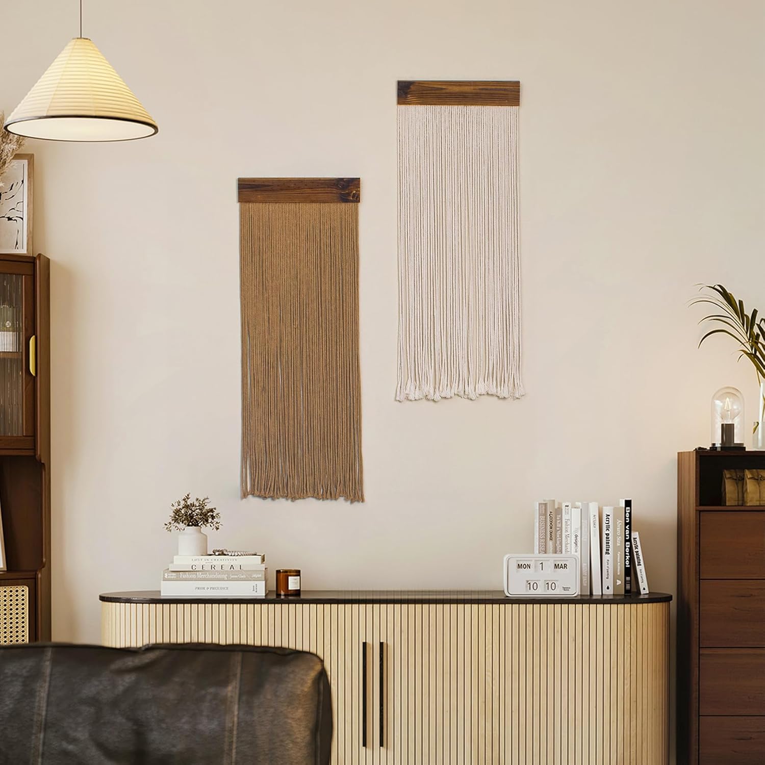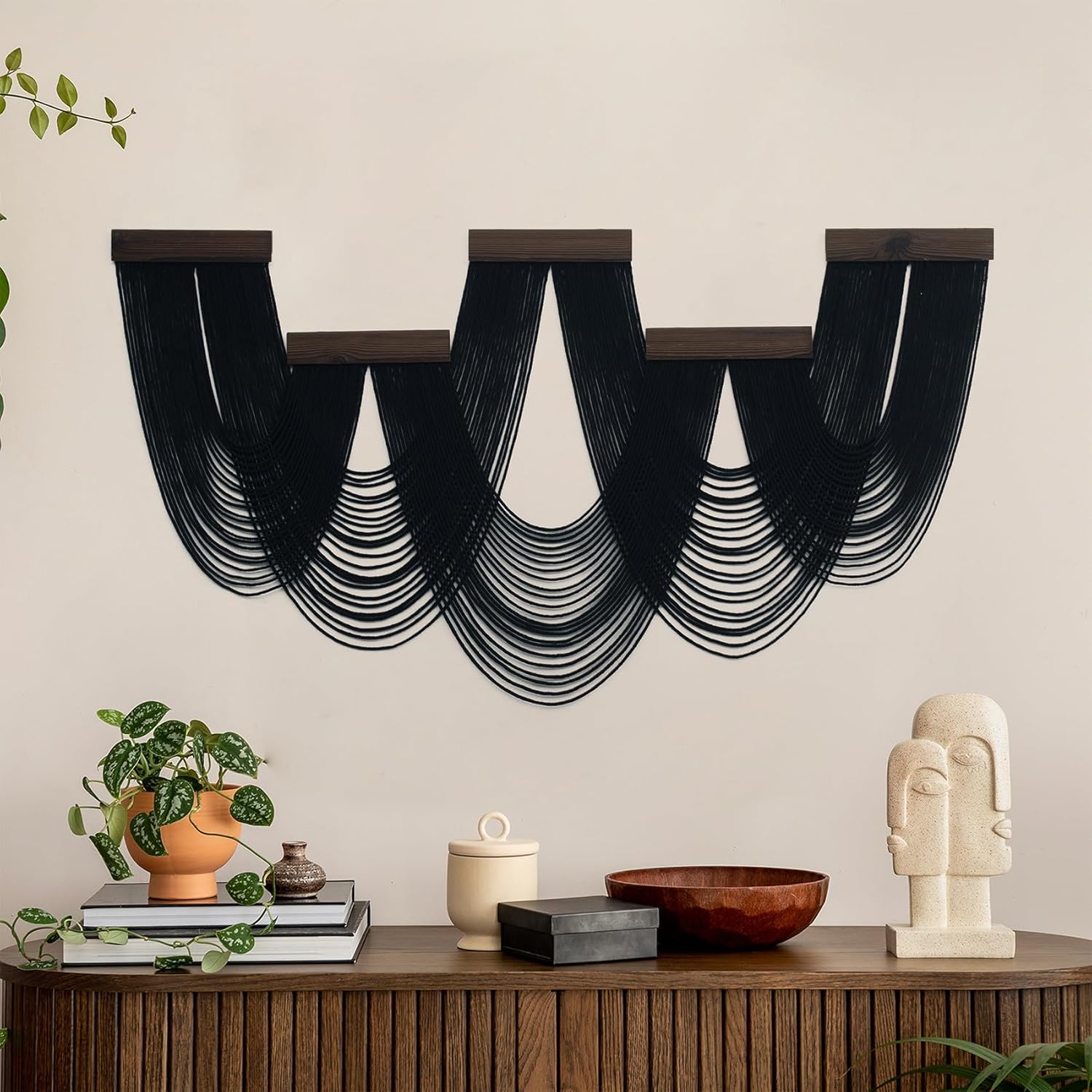 Handmade cotton rope weaving: Carefully crafted by hand, adding a unique artistic touch to your space.Material: Cotton rope, soft and comfortable textureBohemian modern minimalist style: equipped with seamless hooks, can be hung, easy to install, can be used as wall decoration, living room background wall, headboard, foyer, corridor, dining room, homestay, photography background, etcBest gift: This Bohemian style tapestry wall art decoration is perfect as a housewarming, birthday, anniversary, wedding, Valentine's Day, Mother's Day, Thanksgiving, Christmas gift for family, friends, or colleagues.Tips: The macrame may be curly during transport, you can iron it with an iron steam or pull down the strings to regain the straight shape