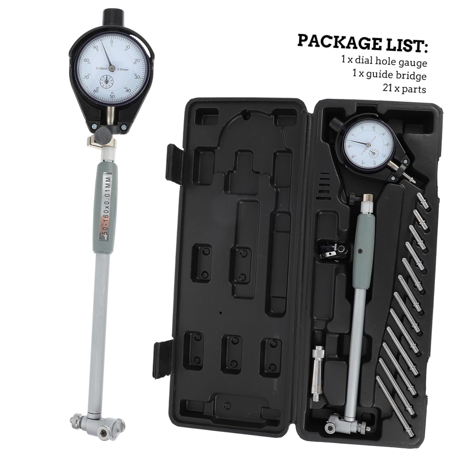 Package List 1 x dial hole gauge 1 x bridge parts Characteristics - Color: As shown metal gauge measuring tool. - Size: 12.00X6.50X3.00cm/4.72X2.55X1.18inch diameter measuring tool. -Product Info:Inner diameter dial table - Material: Steel Measuring Gauge. - The hole gauge tool kit is useful and reliable, durable and practical, suitable for vehicle repair use gauge measuring tool. - Very easy and convenient to use, it is very useful and premium measuring gauges cylinder gauges. - High-grade material, flexibility and excellent durability, easy to use, for hole gauge. - Simple in structure, easy to use, flexible design with parts, you can use it with confidence diameter gauge. - You will have good use experience because of the perfect workmanship of this product measuring tool.Goods Descriptiongauge measuring tool Indicating cylinder gauge can be used to measure inner diameter for automobile repair.metal gauge measuring tool This gauge tool set is very easy and simple to operate, giving you huge convenience for measurement.hole cylinder measurement gage The tool is simple and high-precision, excellent and reliable, carefully crafted, flexible and practical