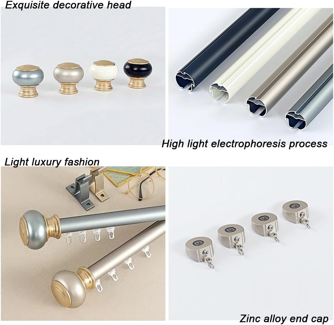 Discover the elegance and functionality of our aluminum alloy curtain track system, designed to enhance any space with style and practicality. Available in single and double-track options, this versatile curtain rod allows you to effortlessly hang a layer of curtains alongside sheer fabrics, creating a stunning layered look that suits any decor. Our system features silent load-bearing wheels, ensuring smooth operation without disrupting your daily activities. Choose from four sophisticated colors—Ivory White, Champagne Gold, Luxury Blue, and Noble Black—crafted with advanced electrophoresis technology for a bright, mirror-like finish that resists chipping and wear. Installation is straightforward with wall-mounted brackets included, and the set comes complete with tracks, wheels, end caps, and brackets for your convenience. Available lengths range from 100cm to an impressive 800cm, making it easy to find the perfect fit for your windows. Whether you're redecorating your living room, adding a touch of class to your bedroom, or creating a cozy reading nook, our curtain track system combines luxury with simplicity. The exquisite decorative heads complement the overall design, offering a lavish yet understated aesthetic. Please note that slight color variations may occur due to monitor settings, and for tracks exceeding 1.5 meters, we provide sectional delivery with connectors to maintain seamless functionality. Trust in our commitment to quality and elevate your space with our stylish curtain track system.