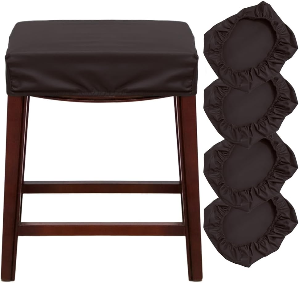 Transform your old or damaged bar stools instantly with our Stretch Waterproof PU Leather Bar Stool Covers. Crafted from high-quality PU faux leather, these washable bar stool slipcovers offer superior durability, water resistance, and a sleek modern look. The soft and stretchable fabric ensures a perfect fit for rectangular or saddle-style stool seats, keeping your furniture looking fresh and clean.Designed with strong elastic bands, these counter and vanity stool seat covers stay securely in place without slipping or wrinkling. They’re easy to install — simply stretch and cover — and even easier to maintain. Just wipe the surface with a damp towel to remove dust or spills; no washing machine required.Whether you want to protect your new bar stools or refresh your old ones, these replacement seat covers are the ideal choice. Perfect for families with children and pets, they guard against stains, scratches, and everyday wear.Stylish and versatile, our PU leather bar stool covers blend effortlessly with any décor. They’re suitable for kitchens, dining rooms, bars, restaurants, cafés, pubs, patios, and gardens, making them a practical and elegant addition to your home or business.Each package includes 2 / 4 / 6 bar stool covers (stools not included). Give your furniture a new life and a refined touch with these durable, waterproof, and stretchable seat protectors.
