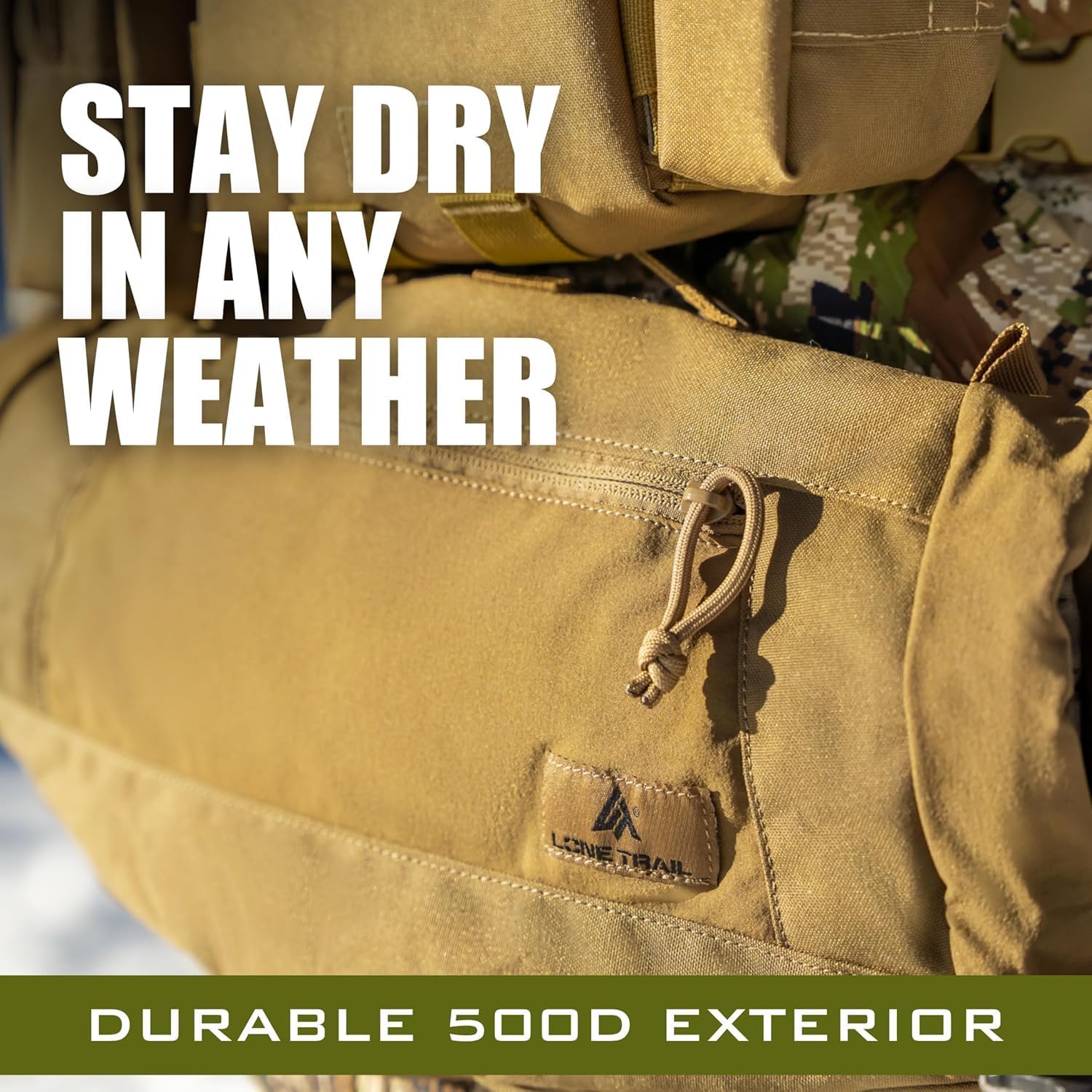 The Lone Trail Binocular Harness + Hand Warmer Bundle is built for hunters who stay out when everyone else packs it in. Our waterproof bino harness keeps your optics protected and within reach — no noisy zippers, no fumbling in the brush. The silent magnetic closure gives you one-hand access to your binoculars and rangefinder, while the rugged 500D Cordura shell shrugs off rain, dirt, and snow. MOLLE webbing lets you customize your setup, and the padded, adjustable straps stay comfortable through long hunts or hikes. Pair that with our sherpa-lined hunting hand muff, and your hands stay warm, dry, and ready. The 500D water-repellent exterior blocks wind and moisture, while the soft fleece interior traps heat naturally — no batteries required. Lightweight at just 9oz, it fits snugly around your waist and includes a stretch pocket for calls, heat packs, or small gear. Together, these two pieces form the ultimate cold-weather hunting setup — rugged, quiet, and built for performance when conditions get tough. Every Lone Trail purchase helps support U.S. veterans nationwide — because real toughness means giving back to those who’ve served. Lone Trail – Built for the field. Committed to our veterans.