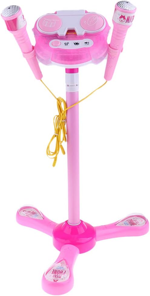Description: - KARAOKE MICROPHONE - Microphone with adjustable stand and handheld microphone for your little star's guest singer. - Connect your MP3 player, phone, computer, etc. to play and your own songs. Easy to assemble and disassemble for quick setup and storage. - The bright lamp makes them feel if they were performance reality show. Easy to use ON/OFF. Required 3 AA batteries (not included) - Karaoke microphone with support for your child's hand-eye coordination. - Perfect for ages 3, 4, 5, 6, 7, 8, 10 . Chritsmas karaoke microphone with light, meets girls Letter from the Year: - Adjustable bracket: 53-89 cm / 20.86-35.03 inches. - Back: 17 x 14.5 cm / 6.69 x 5.70 inches. Package includes: 1/2 Sets of Karaoke Machine Toys