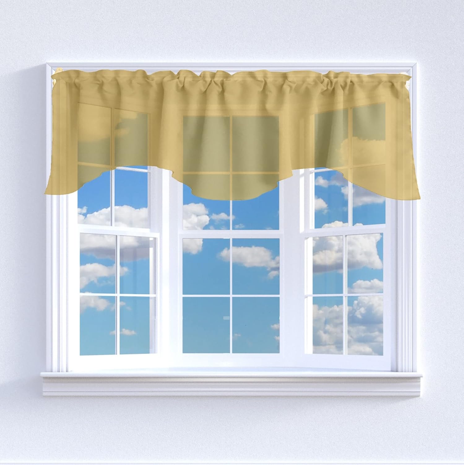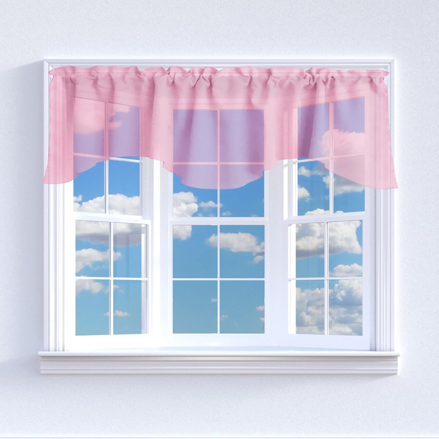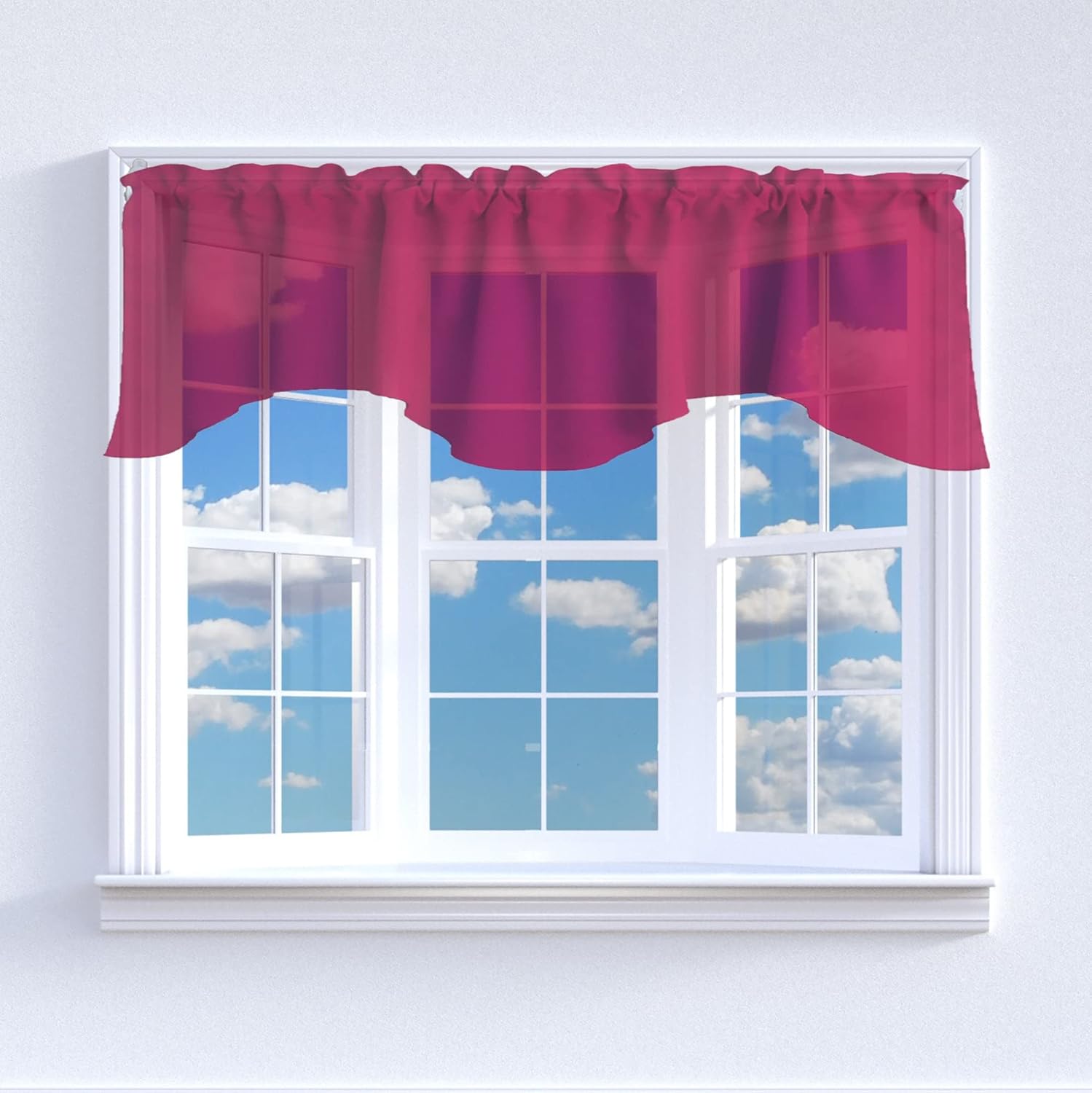 Scalloped valance set made from a Sheer organza fabric. This includes a valance with the measurements of 72" wide and 36" tall swag ends, the middle is 18" tall from the top edge. One inch header above a two inch pocket at the top of the valance. The colors of products when viewed on your computer monitor may appear different than the actual color of the merchandise. We make every attempt to give you a good representation of the available colors for each product sold, but unfortunately we cannot guarantee an exact match. Please contact us for swatch samples or custom size requests.