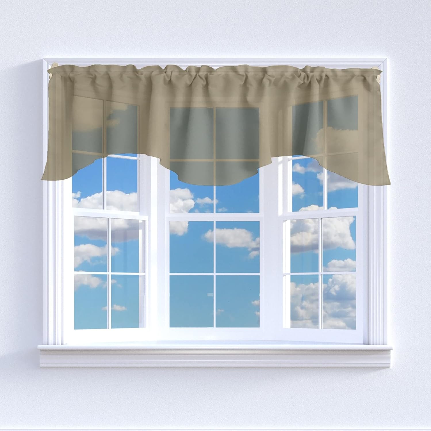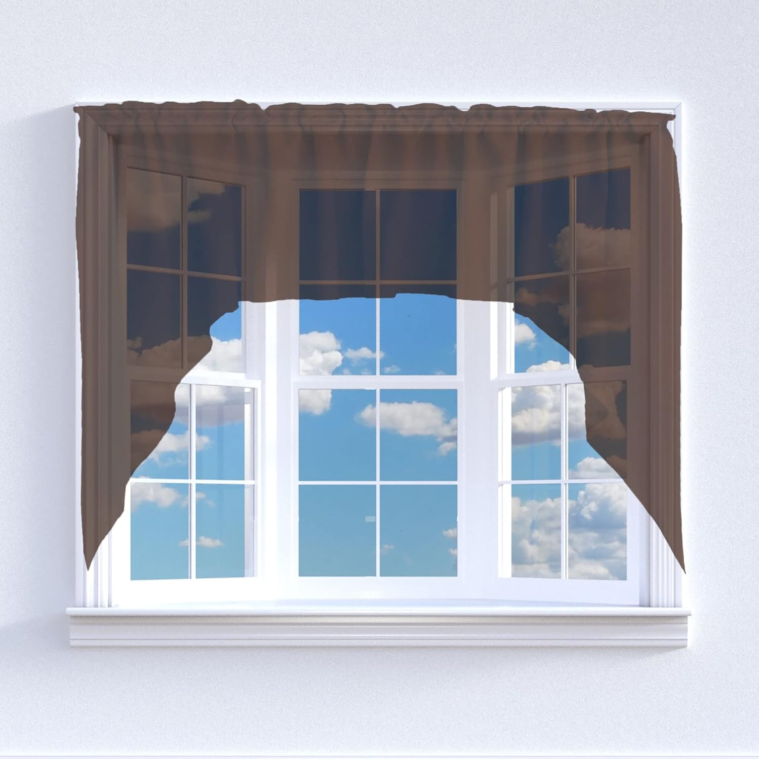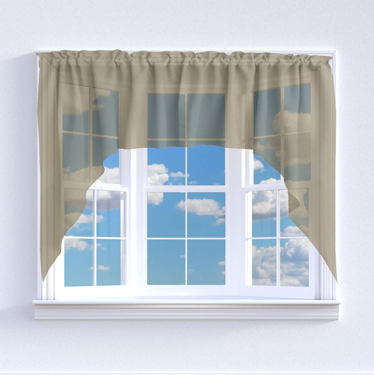 Scalloped valance set made from a Sheer organza fabric. This includes a valance with the measurements of 72" wide and 36" tall swag ends, the middle is 18" tall from the top edge. One inch header above a two inch pocket at the top of the valance. The colors of products when viewed on your computer monitor may appear different than the actual color of the merchandise. We make every attempt to give you a good representation of the available colors for each product sold, but unfortunately we cannot guarantee an exact match. Please contact us for swatch samples or custom size requests.