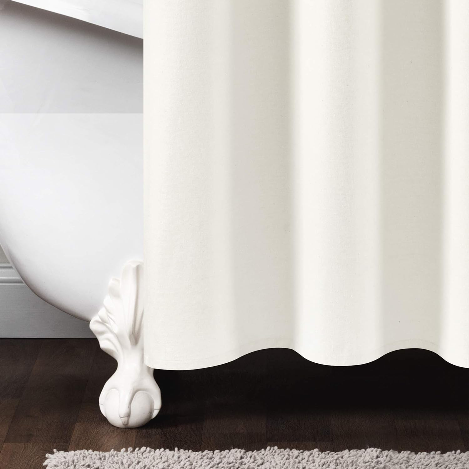 Update your bathroom with soft textures of the Lush Decor Stitched Woven Stripe Yarn Dyed Cotton Blend Shower Curtain. This textured shower curtain features a black stitching design across the top portion of the curtain. The neutral colors of these shower curtains for bathroom make it easy to match with your existing decor. But it complements a modern farmhouse, country, or boho decor style. This cream shower curtain measures 72 inches wide by 72 inches long and is crafted from a 70% recycled cotton, 30% recycled polyester fabric blend. Installation is easy with 12 button holes at the top to hang with shower hooks or rings. Pair this fabric shower curtain with a liner, sold separately. To care for this bathroom curtain, we recommend to dry clean only.