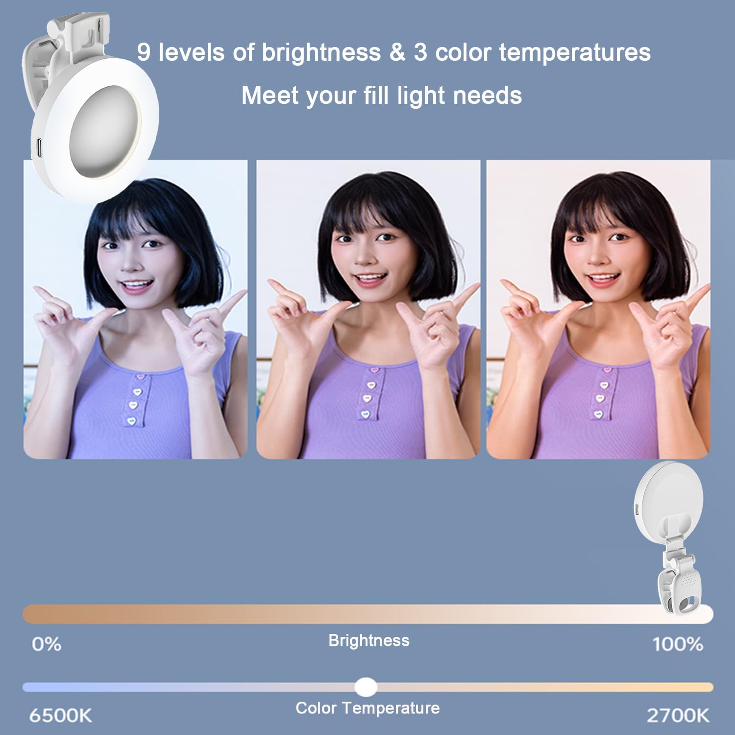 selfie monitor screen、selfie light、 silicone rope