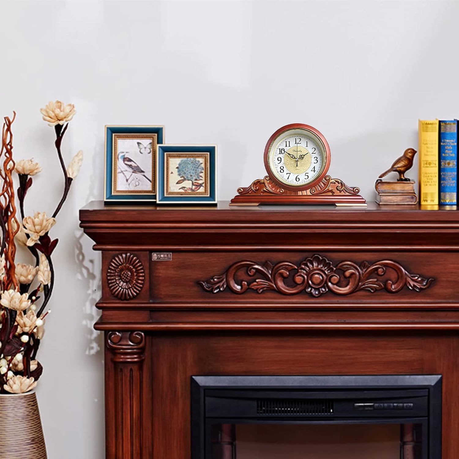 Desk Clocks-Classic and Timeless. LARGE and classy, this desk clock will look amazing on top of your fireplace, mantel or desk. FINE:crafted details creates an elegant, sophisticated timepiece . QUALITY:quartz movement ensures the time is always accurate. VINTAGE INSPIRED AND BEAUTIFULLY DESIGNED WITH EMBELLISHED DETAILS. ENHANCE your home dcor by displaying this mantel clock prominently. MAKES a cherished gift for that special someone in your life. GREAT addition to your trinket and ornament collection. Make a timeless statement with this beautiful mantel clock. Size: 16.5 inches/10 inches/3.3 inches Color: imitation wood Material: high quality plastic/glass cover Contains: exquisite table clock*1