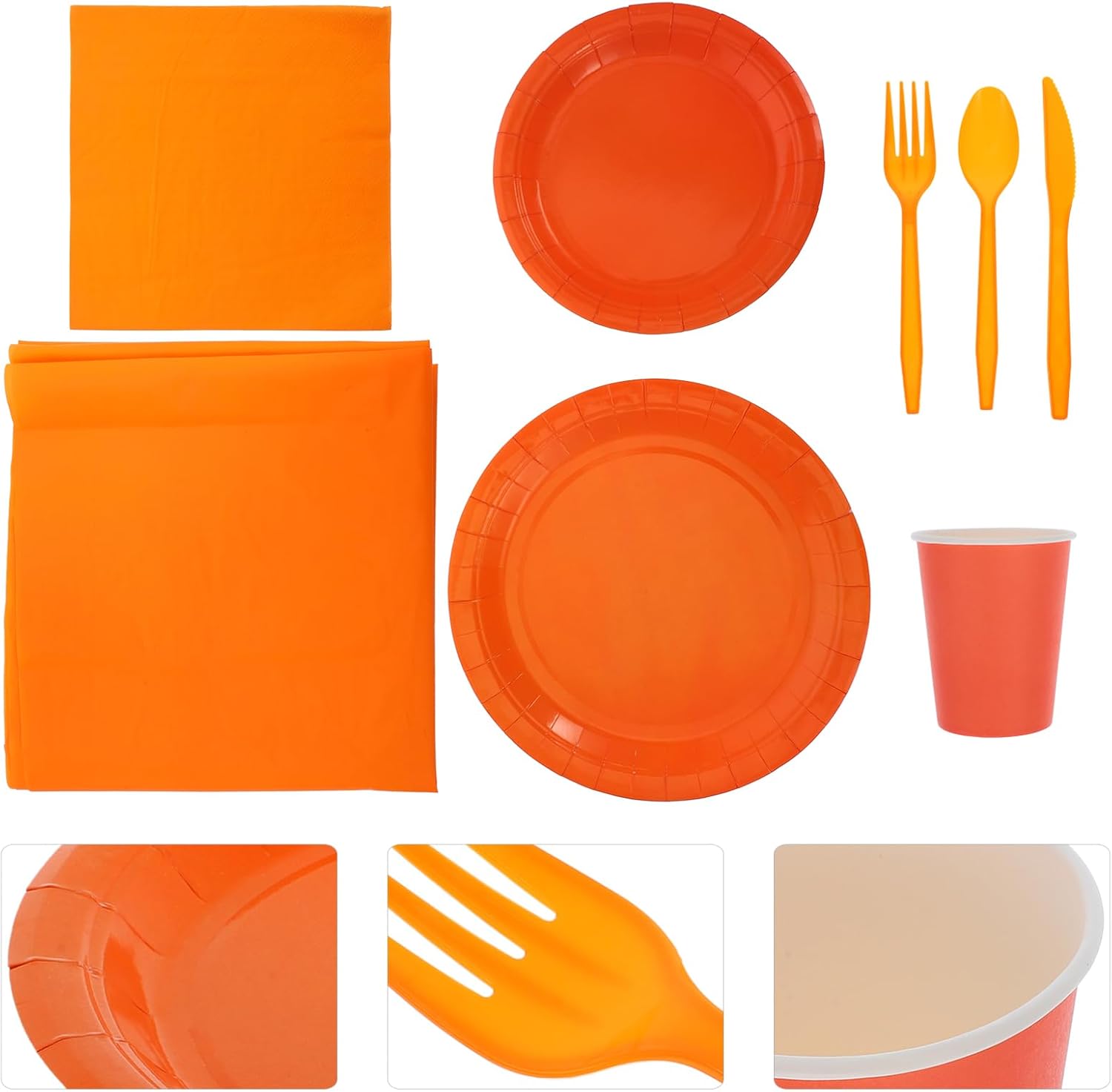 Package List 20 x dishes(7in) 20 x dishes(9in) 20 x napkins 20 x cups 20 x spoons 20 x cutters 20 x forks 1 x tablecloth Features -Size: 16.00X3.50X1.50cm/6.29X1.38X0.59in orange party supplies disposable -Size: 22.86X22.86X1.50cm/8.98X8.98X0.59in party plate cup -Size: 274.00X137.00X0.10 cm/107.68X53.84X0.04in paper dinner plate -Size: 8.50X5.20X5.20cm/3.34X2.04X2.04in table cloth orange -Size: 17.00X17.00X1.50cm/6.68X6.68X0.59in party tableware -Size: 17.00X17.00X0.10cm/6.68X6.68X0.04in orange themed party tablecloth -Bright color: bright colors to match your party theme, with a standout fresh orange party for a lively atmosphere party supplies -Color:Orange disposable paper cup -Material:PE, paper paper meal plate -Size: 17.00X2.00X0.20cm/6.68X0.79X0.08in paper party plate -Comprehensive: includes everything you need for a complete party setup, catering to various themes and guest numbers orange decorations - Beautiful and unique: suitable for many occasions, adding color and ambience to your dessert table cups paper napkins -Size: 16.00X3.00X1.50 cm/6.29X1.18X0.59in tablecloth orange - Simple and convenient to use: Single use using tableware, save your time for cleaning up orange napkins tableclothGoods Informationorange themed party tablecloth Elevating your party experience with our orange tableware.party napkins Ideal for any celebration, this collection is designed to be both stylish and sustainable.party plate The materials is safe, making it ideal for birthdays, weddings, and family gatherings