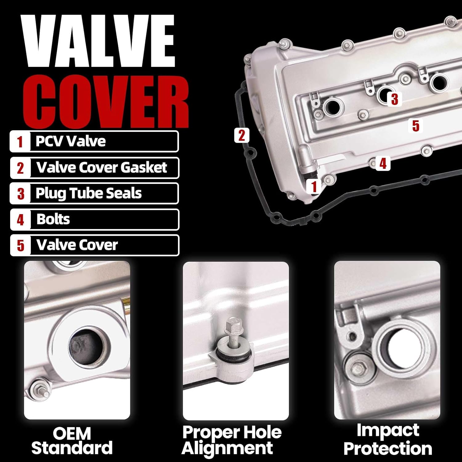 | Included Components | Bolts, Gasket, PCV Valve, Plug Tube Seal, Valve Cover |