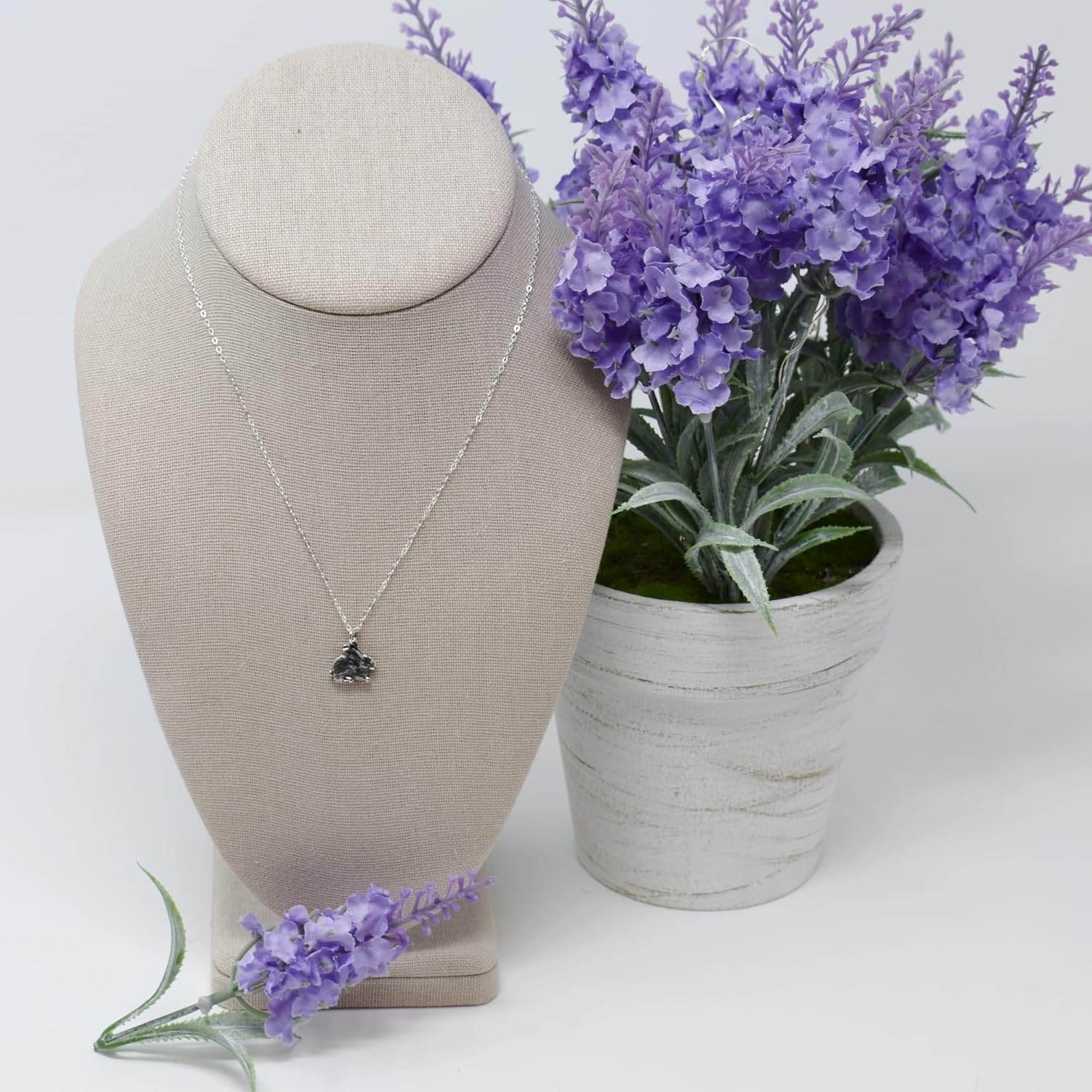 Bunny rabbit charm in sterling silver on a 16 Inch sterling silver cable chain. It is presented on a card that reads: "Some Bunny loves you"Rabbits are popularly associated with a healthy curiosity, abundance, and acute awareness. What a perfect gift this would make for the rabbit owner, animal lover, or wildlife enthusiast in your life. Give this adorable necklace as a gift for birthdays, Christmas, Easter, or just because! The chain we used is a sturdy, strong sterling silver cable chain - it is 1.3 mm in width. ●Measurements: Pendant 15 mm x 13 mm ●Sterling silver cable chain ●Handcrafted in our studio in Upstate NY ●Perfect gift for you or loved one ●Materials and Finish: Sterling silver ●Gift Box and Ribbon ●100% happiness guarantee STERLING SILVER: We use .925 Sterling Silver that we source from reputable companies in the United States. Sterling silver oxidizes and requires polishing from time to time. You can easily restore the shine by using a polishing cloth. CARE INSTRUCTIONS: Sterling silver can react to beauty and cleaning products. Avoid contact as much as possible with perfumes, hairsprays, lotions, and household cleaners. To maintain a shiny bright finish for as long as possible, store your fine jewelry away from the air in a zip-lock plastic bag, and keep it as dry as possible. Do not wear it in the shower or store it in a humid environment.