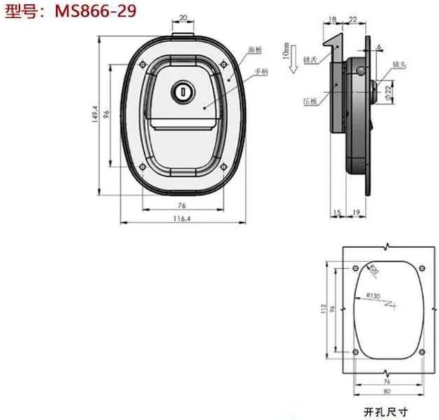 LocksModel Number : MS866-29Lock Type : Box LockOrigin : Mainland ChinaTYPE : Panel lockcolor : slivermodel number : MS866-29material : 304 stainless steelSurface treatment : PolishingKey : 2 keysApplication : RV ,TURCK,Telecommunications cabinets, industrial machinery cabinetssample : support