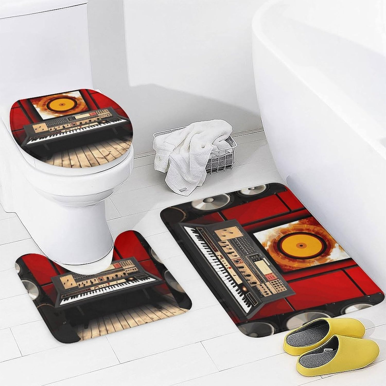 Welcome to a Cozier, More Organized BathroomComplete Bath Mat Set Cute Shower Curtain Set Bath Accessories Set Bathroom Set with Shower Curtain Bathroom Decor Soft Bath Mat Bathroom Decor Set Bathroom Rug Bathroom Floor Mat Housewarming Gift Bathroom Vanity Mat Luxury Bathroom Mats Set for Tub Side Bath Mats for Bathroom SetLuxurious Comfort UnderfootOur thick, velvety coral fleece bath mats are exceptionally soft and gentle on your skin. They are highly absorbent, quickly wicking moisture away from your feet after a shower or bath, leaving your bathroom floor dry and preventing slips.Functional Protection & PrivacyThe included waterproof Oxford fabric shower curtain is a reliable barrier against water spray, protecting your bathroom from moisture. It ensures privacy while its sleek look complements most decors. The matching toilet lid cover adds a finished, hygienic touch to your toilet.Thoughtful Details for Your ConvenienceThe modern shower curtain set feature a secure non-slip backing to keep them firmly in place. The set comes ready to use with 12 durable C-shaped plastic hooks for the curtain. Achieving a put-together bathroom has never been easier.Easy Care for Lasting BeautyMaintaining a fresh, clean bathroom is simple. The mats fluff up nicely after washing. We recommend gentle hand washing to best preserve the fabric's softness and color vibrancy. The shower curtain can be wiped clean with a damp cloth.Create Your SanctuaryIdeal for master bathrooms, guest suites, apartments, dormitories, or rental properties. This set is the perfect gift for housewarmings, new homeowners, or anyone looking to upgrade their bath space with minimal effort and maximum style.
